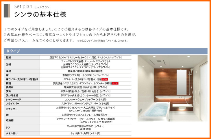 | 商品名 | TOTO マンションリモデル バスルーム シンラ Rタイプ 基本仕様 1620J Y |
