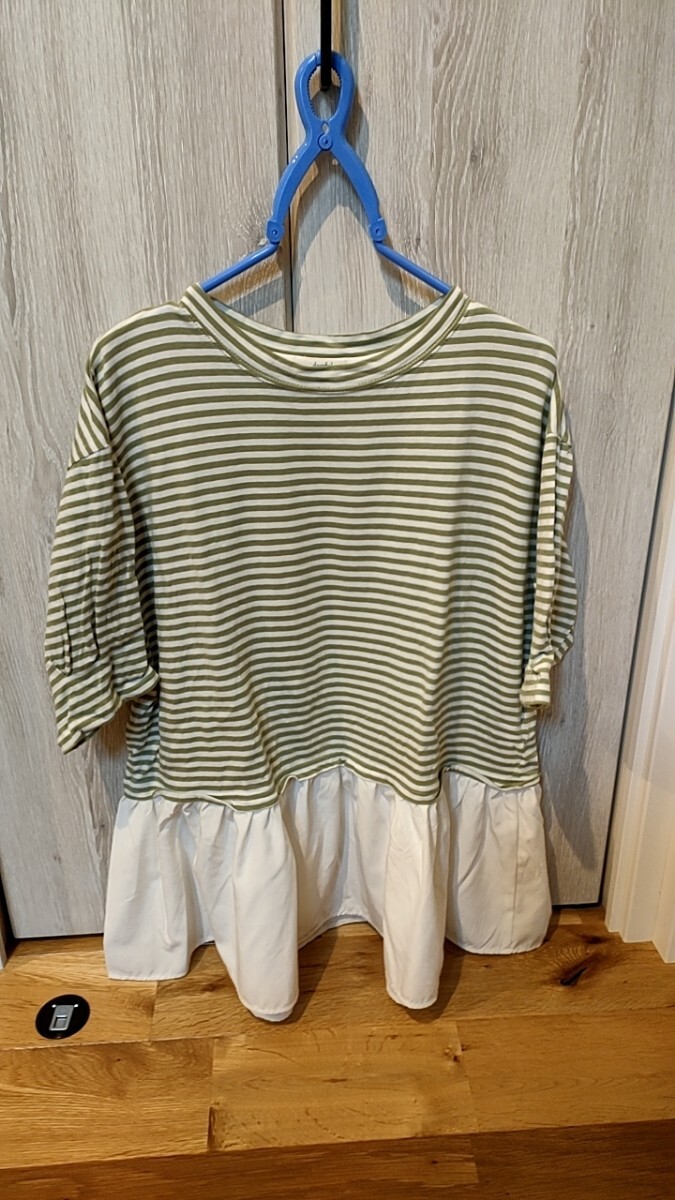 婦人服Lサイズの出品になります。グリーンボーダープラスチュールでとてもかわいいTシャツです。
