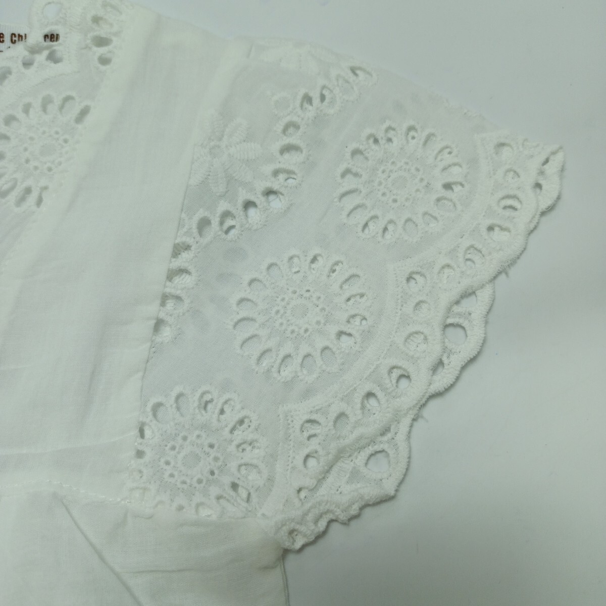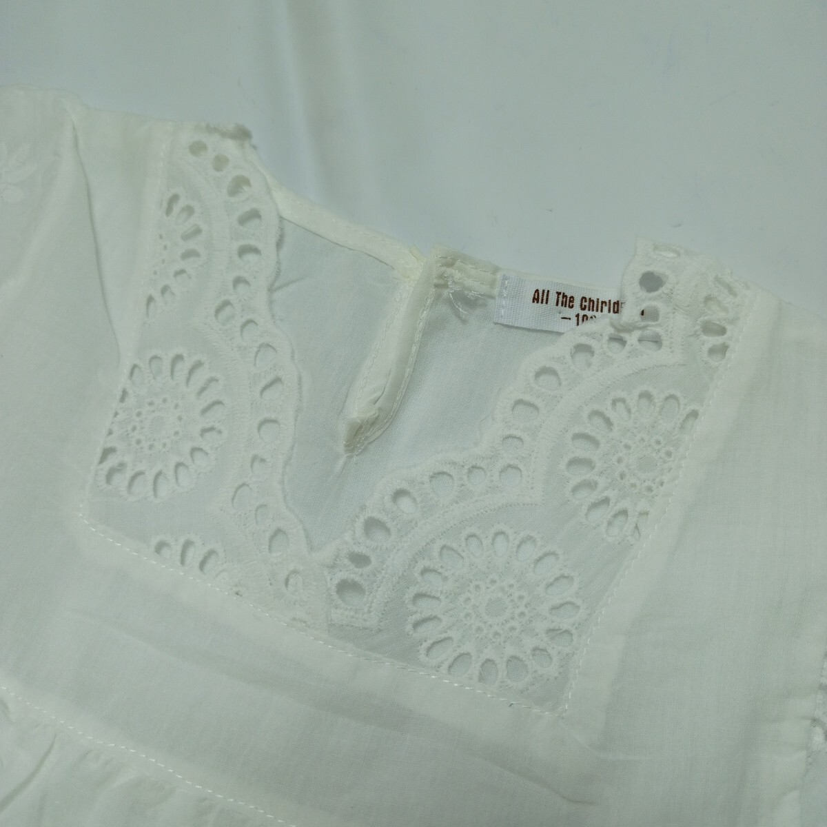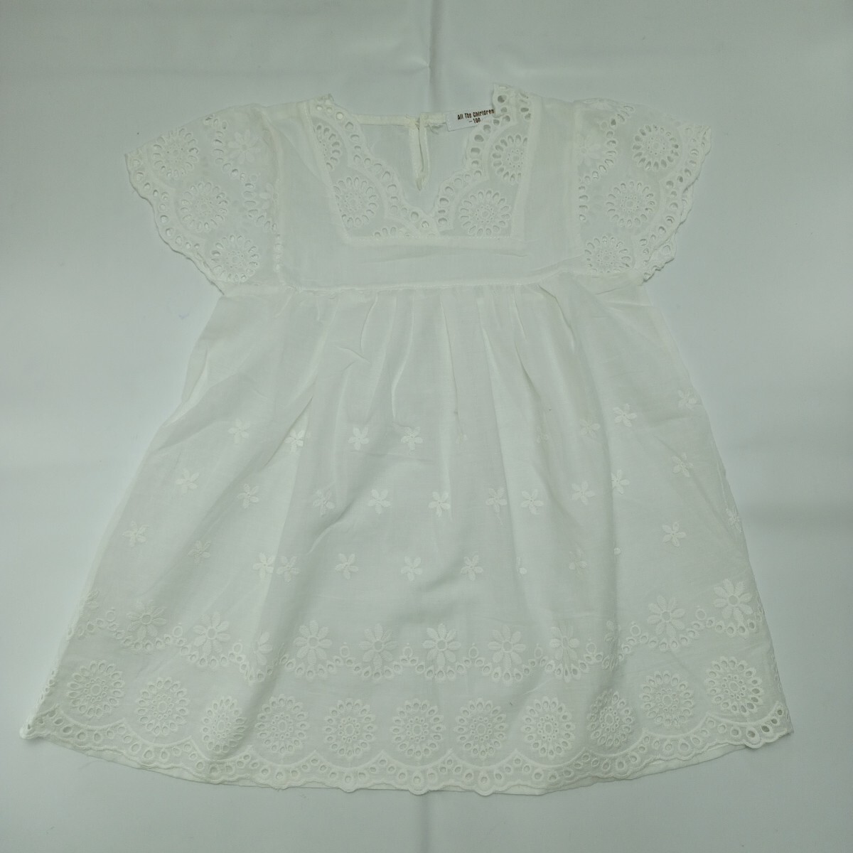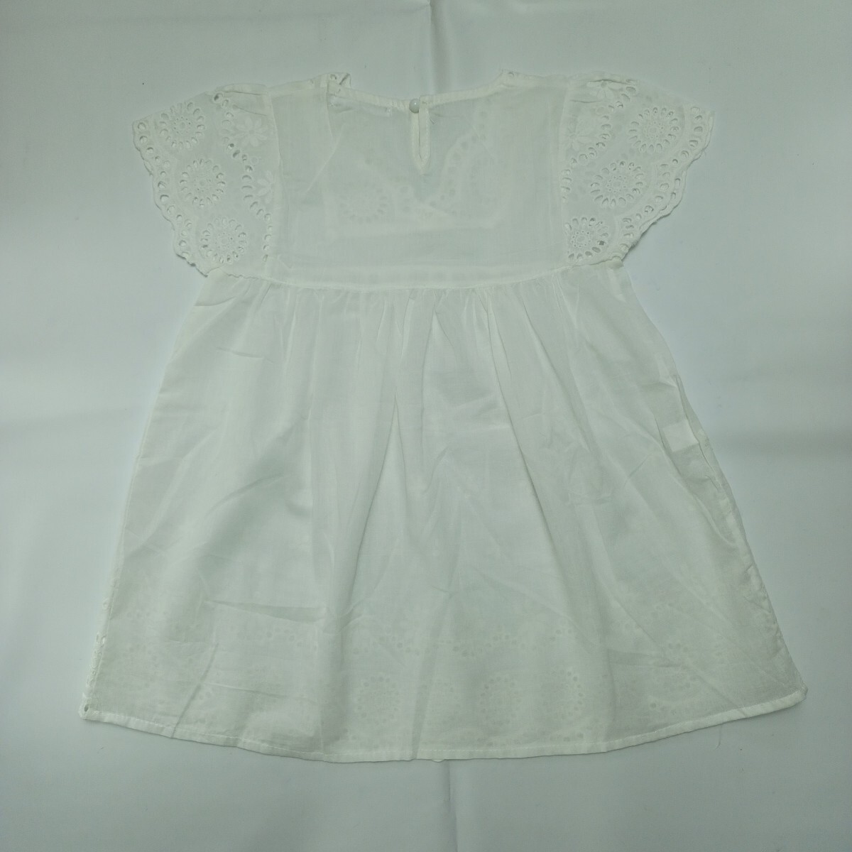 【未使用】100 子供服 幼児 女の子 キャップ スリーブ ワンピース アイレット レース 花柄 刺繍 インナー