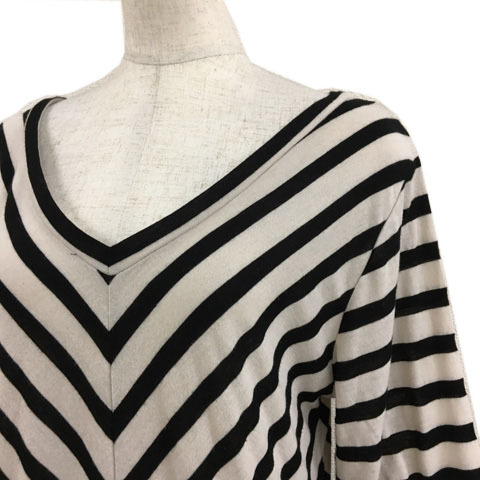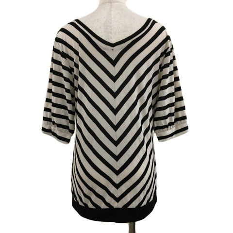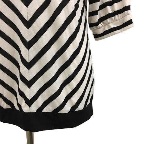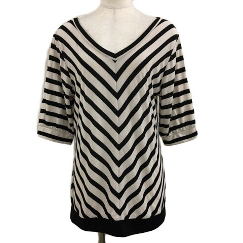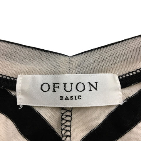 オフオン ofuon カットソー Tシャツ プルオーバー Vネック ボーダー 五分袖 38 ベージュ 黒 ブラック レディース