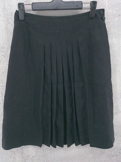 ◇ ◎ NEWYORKER ニューヨーカー サイドジップ 膝丈 プリーツ スカート サイズ64-91/9 ブラック レディース