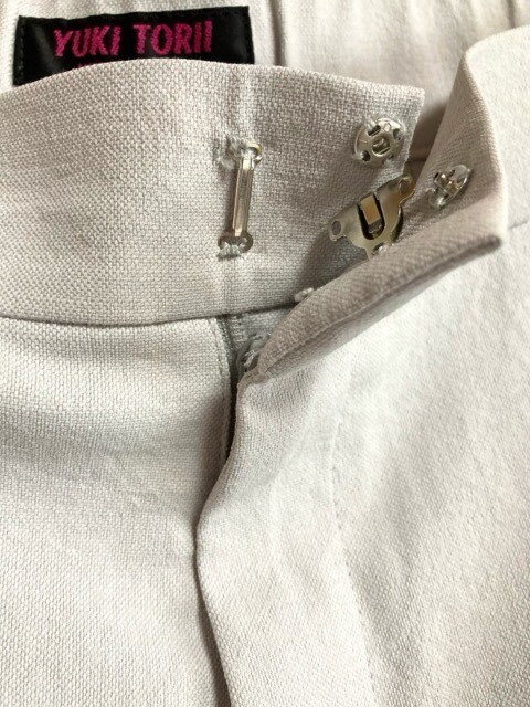 【状態】ホックの片側の糸が切れています。 両裾・裾周辺に汚れがございます。