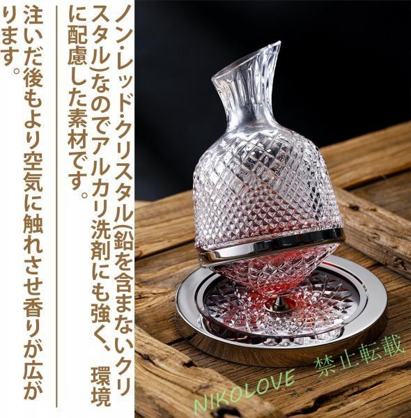 中心軸を回転させることで、赤ワインと空気が完全に接触し、より一層醸し出された芳香が楽しめます。それだけでなく、このデキャンターの美しさは、あなたとパートナーのロマンチックな雰囲気を一層高めることでしょう。