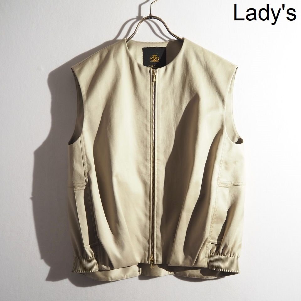 P1057P ▼Drawer ドゥロワー▼ 24AW PRE1 ツイル ノーカラーベスト ベージュ オーバーサイズ / ジップ ノースリーブ シーズンレス rb mks