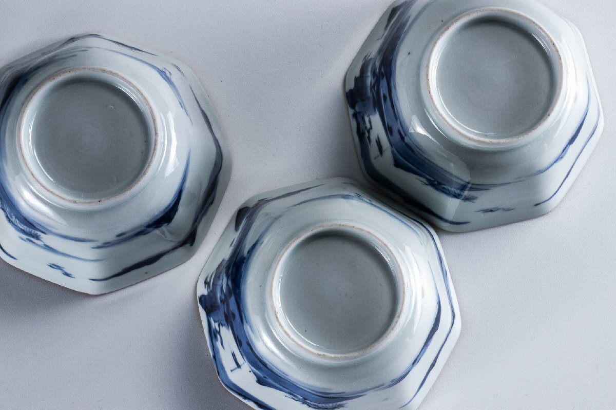 【うつわ】古伊万里 染付楼閣山水文八角向付 5客 江戸後期 E231A バラ売り可能です 和食器 小鉢 古美術 骨董 古玩 日本料理 懐石 料亭