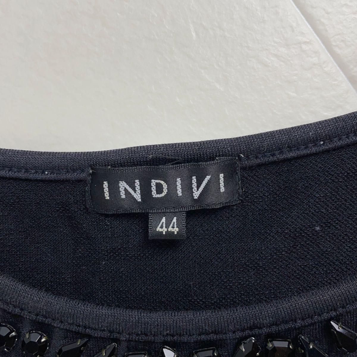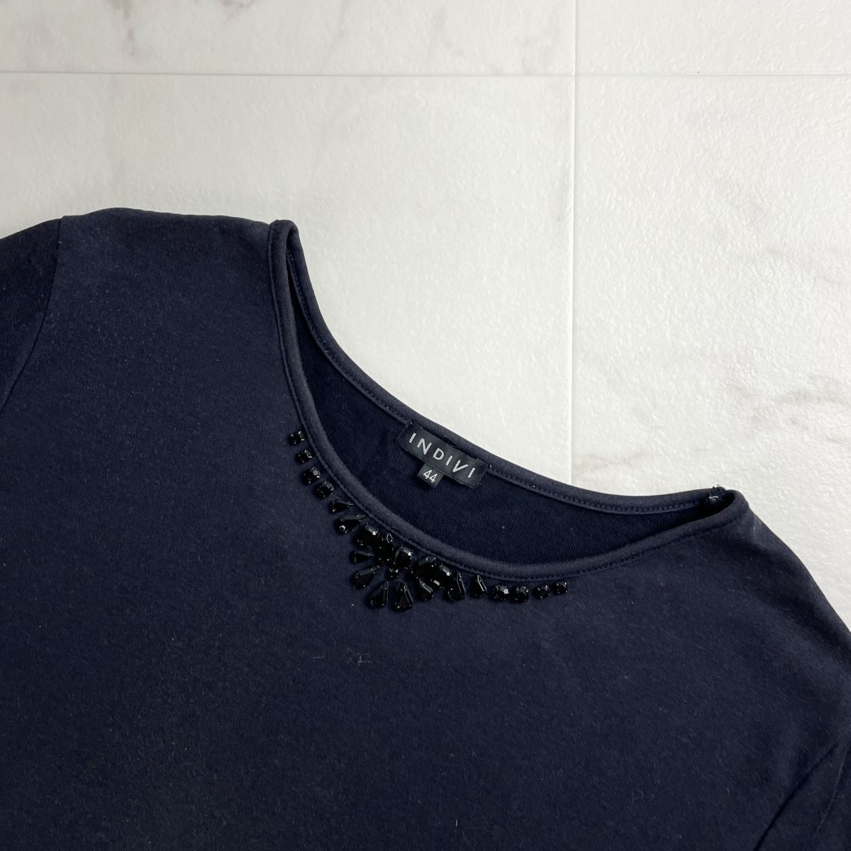 INDIVI インディヴィ フロントデザインTシャツ 半袖カットソー カラーストーン トップス レディース 黒 ブラック サイズ44*RC1443