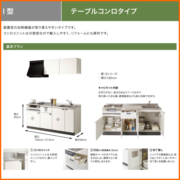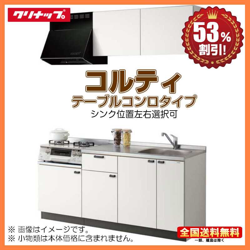 | 商品名 | クリナップ コンパクトキッチン コルティ 2100 テーブルコンロタイプ Hシリーズ コンロユニット750 Y |