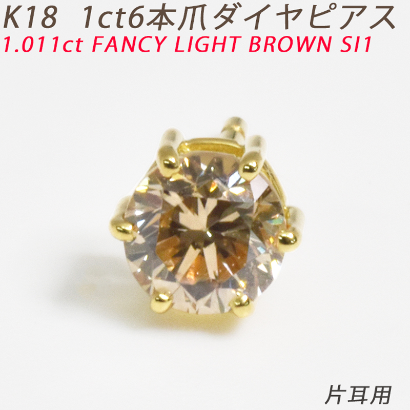 商品名 | K18 1カラット 6本爪ブラウンダイヤピアス【片耳用】 |