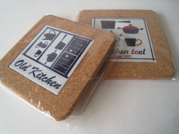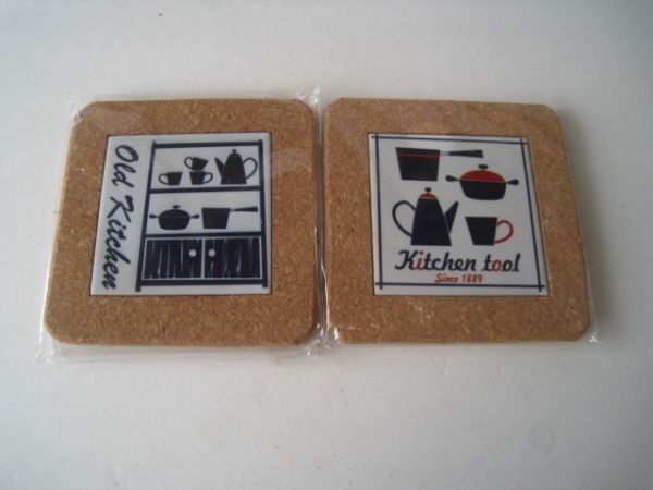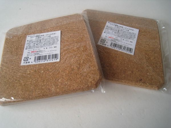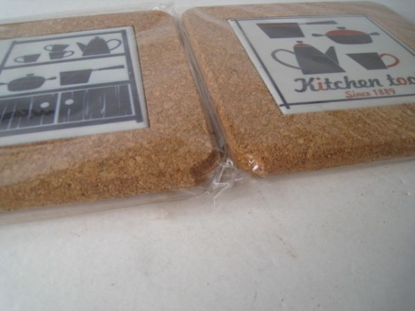 未使用品 コルク鍋敷き 角型 タイル付き 2枚 キッチン用品 15x15cm 調理器具 なべしき/23N7.18-48