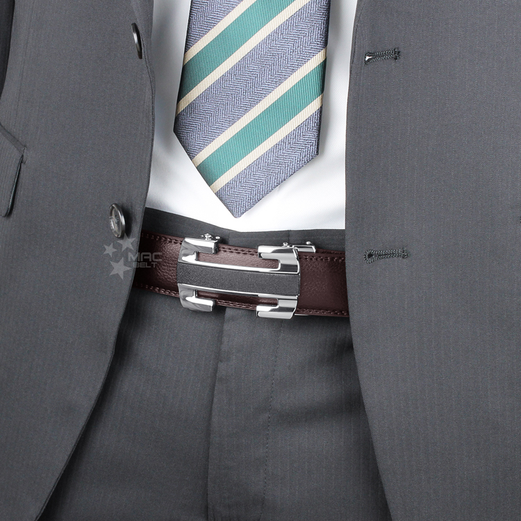 サイズ調整はいつでもワンタッチで自由自在。快適レザーベルトです。