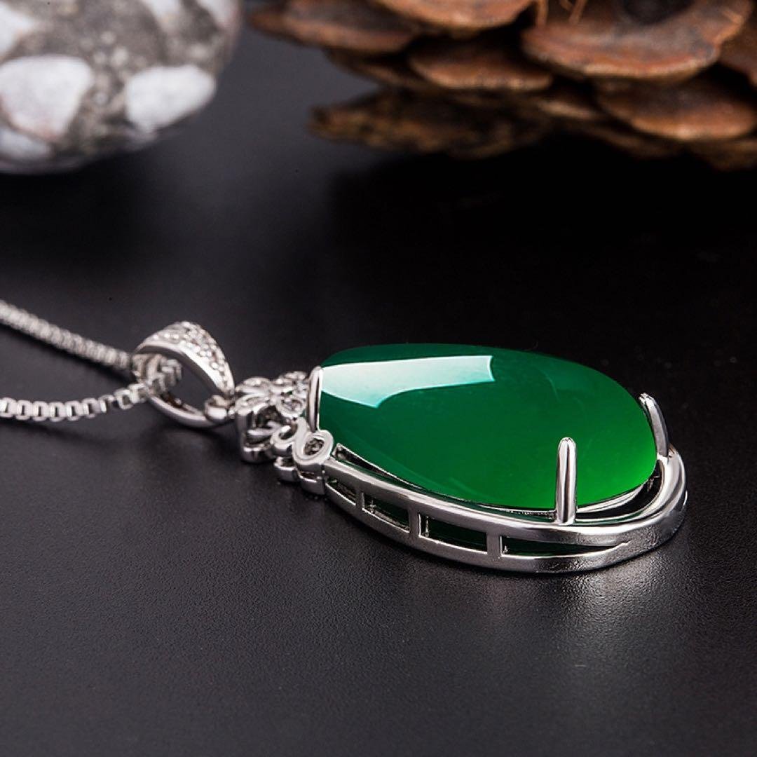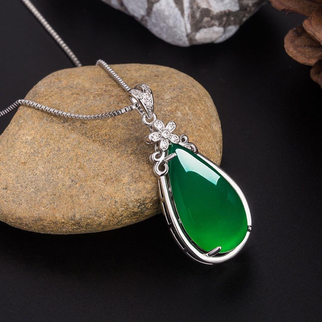 レディースネックレス 水滴形のネックレス 緑玉髓ネックレス