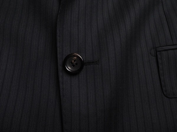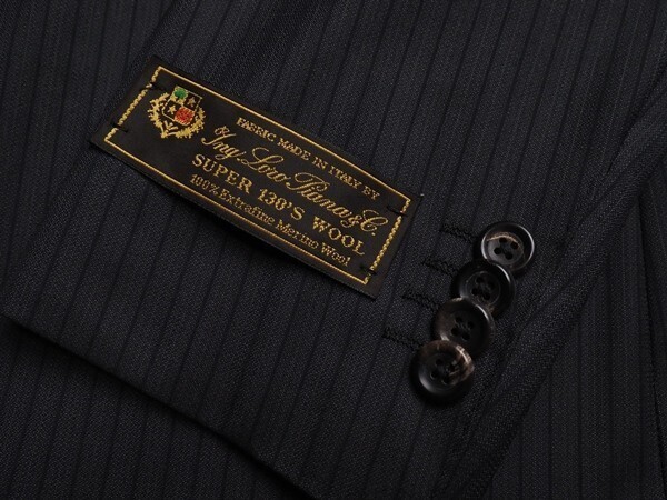 水牛釦、AMFステッチ、ロロピアーナジャガード裏地、お台場仕立てなど、百貨店向けならではのオーダーメイド並みの最上級仕立てで仕上げられております。 ファブリックはイタリアの最高級ファブリックメーカー、ロロピアーナ社のウール100%生地を使用。最高級オーストラリア産メリノウールSUPER130's生地を贅沢に使用。このメリノウールの繊維は非常に細く、1キログラムの羊毛から100キロメートルの長さを紡ぐ事が出来るそうです。その糸を1/2のサージの織機で織り上げることで、原毛の持つシルクのような上品な光沢を醸しだしています。