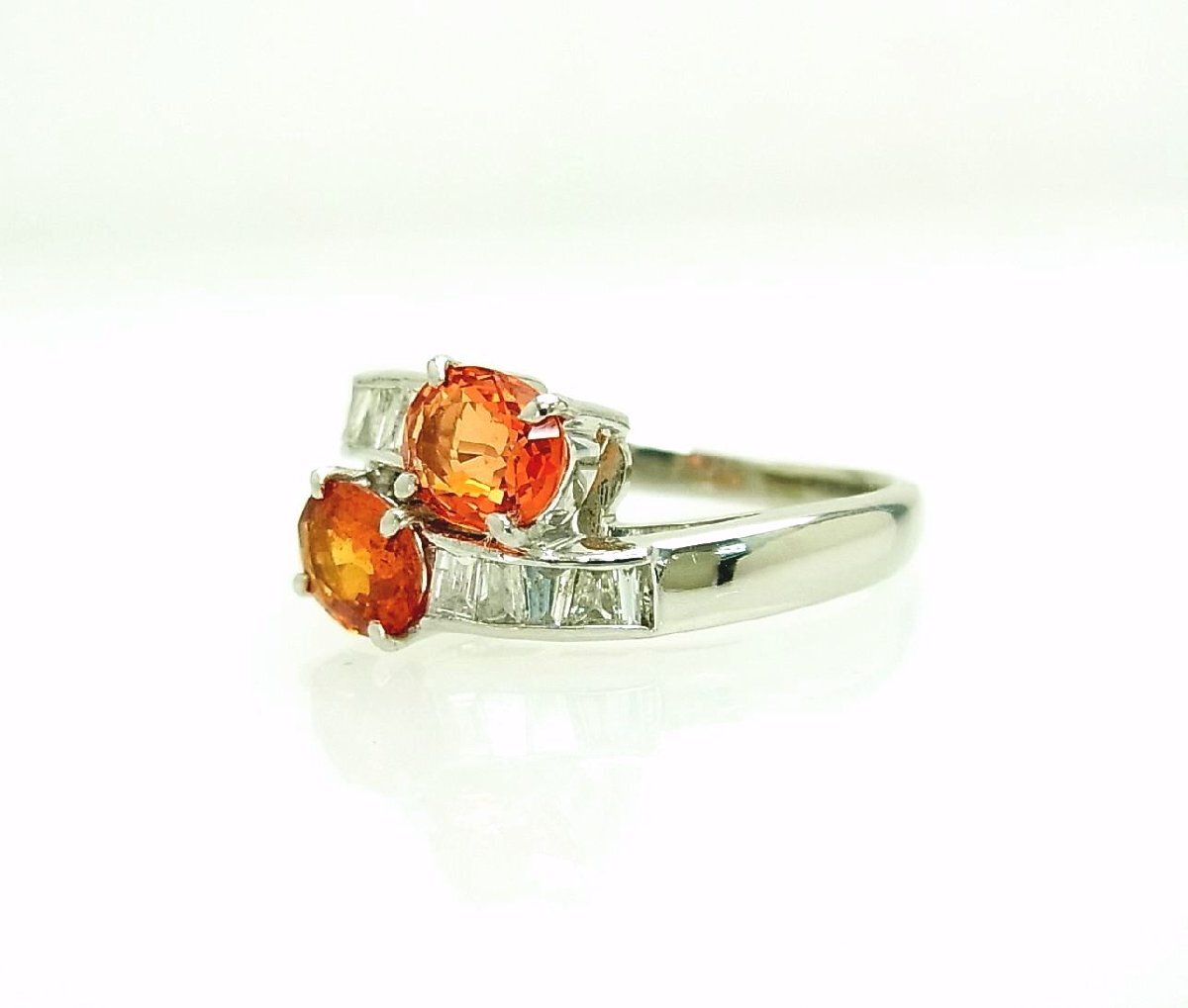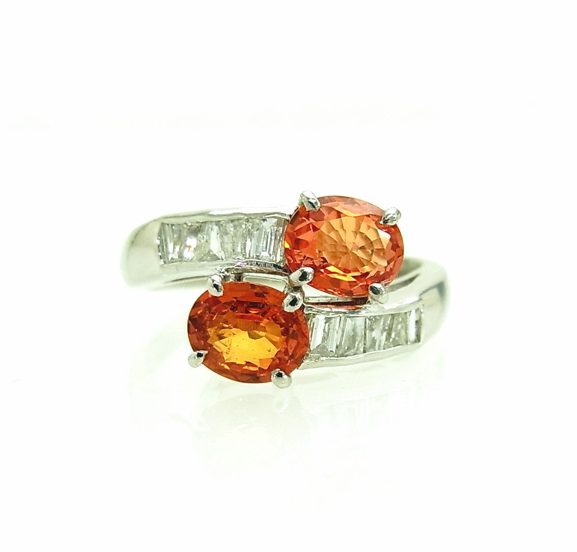 ビビットオレンジ 天然オレンジサファイア 1.43ct 天然ダイヤ0.35ct プラチナ製リング 商品動画あり 送料込み