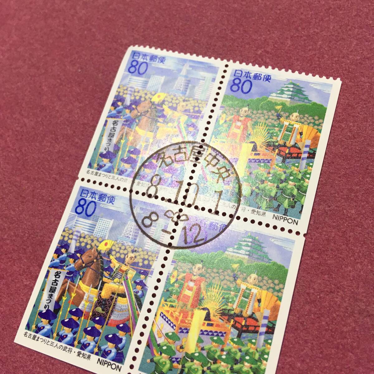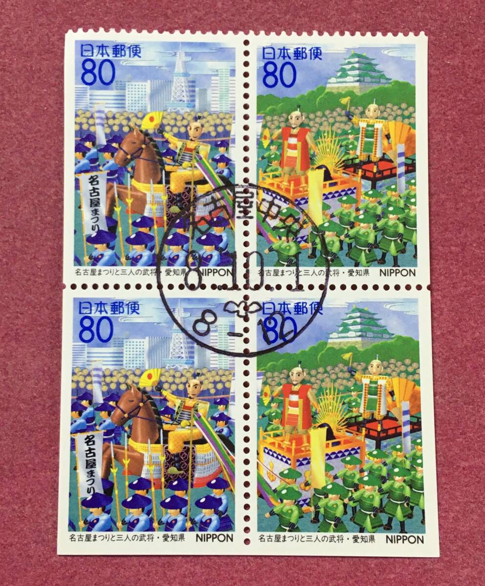初日印 ふるさと切手 愛知県 名古屋まつり 4枚 名古屋中央 使用済