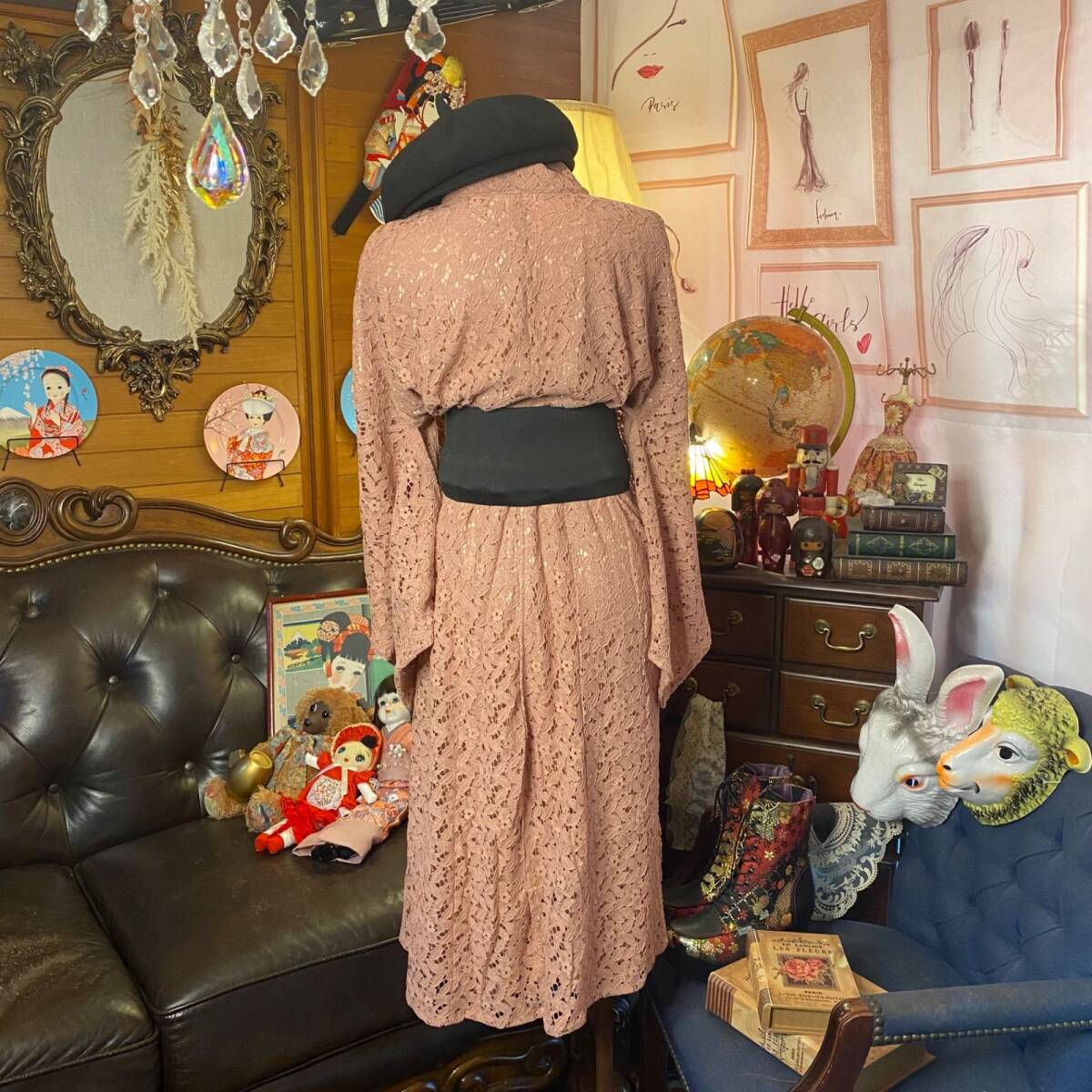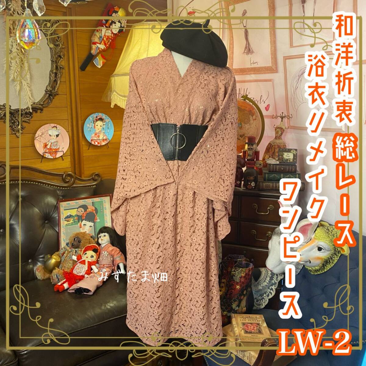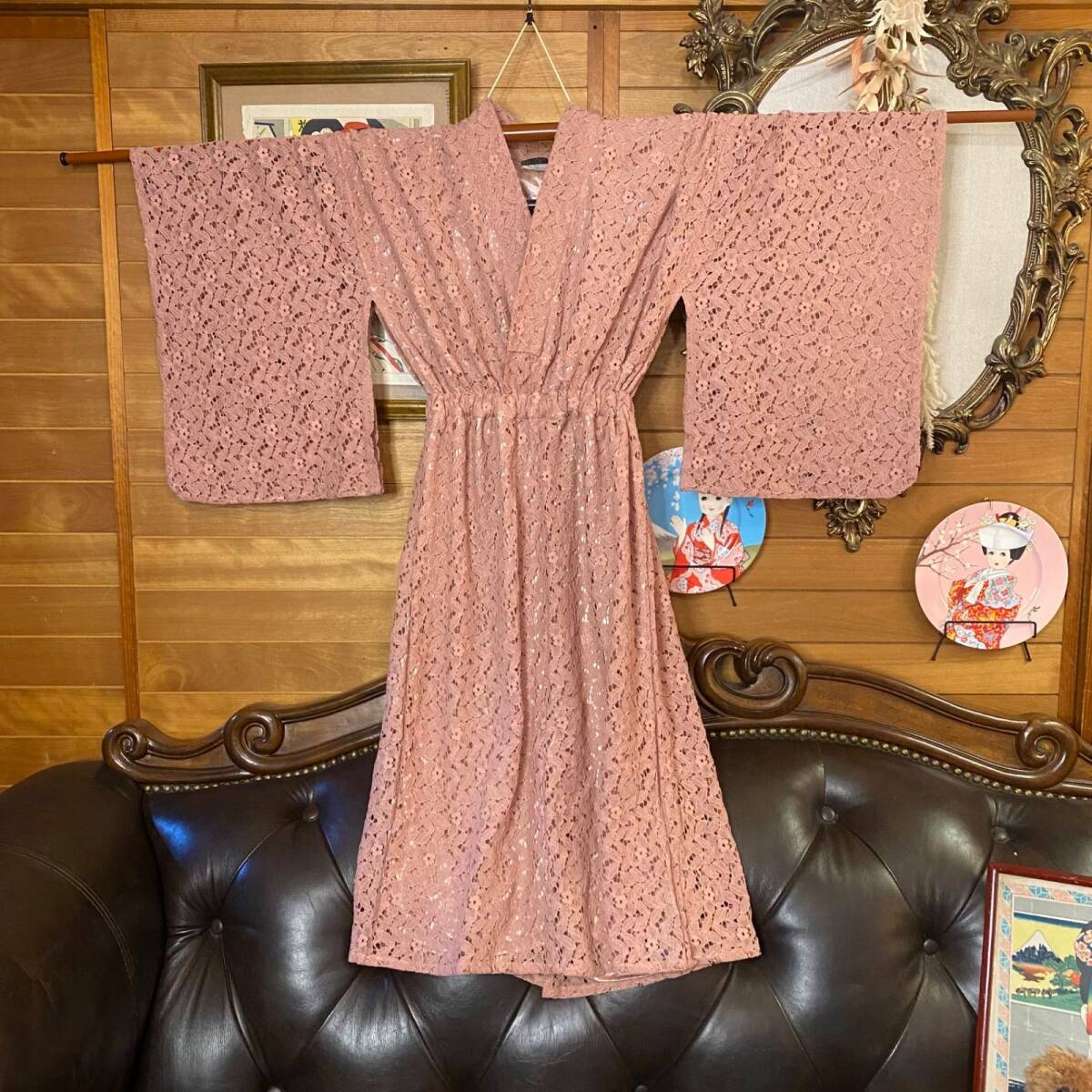 【 和洋折衷 総レース浴衣 リメイク ワンピース ドレス シルバーリングコルセット太ゴムベルト ピンク系 LW-2 】