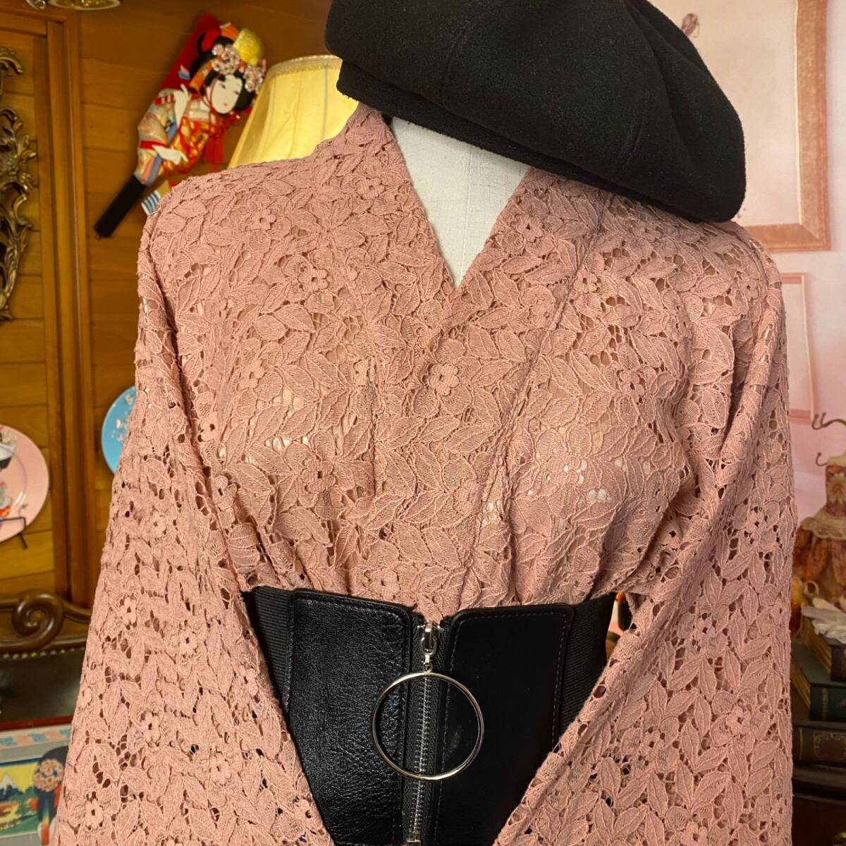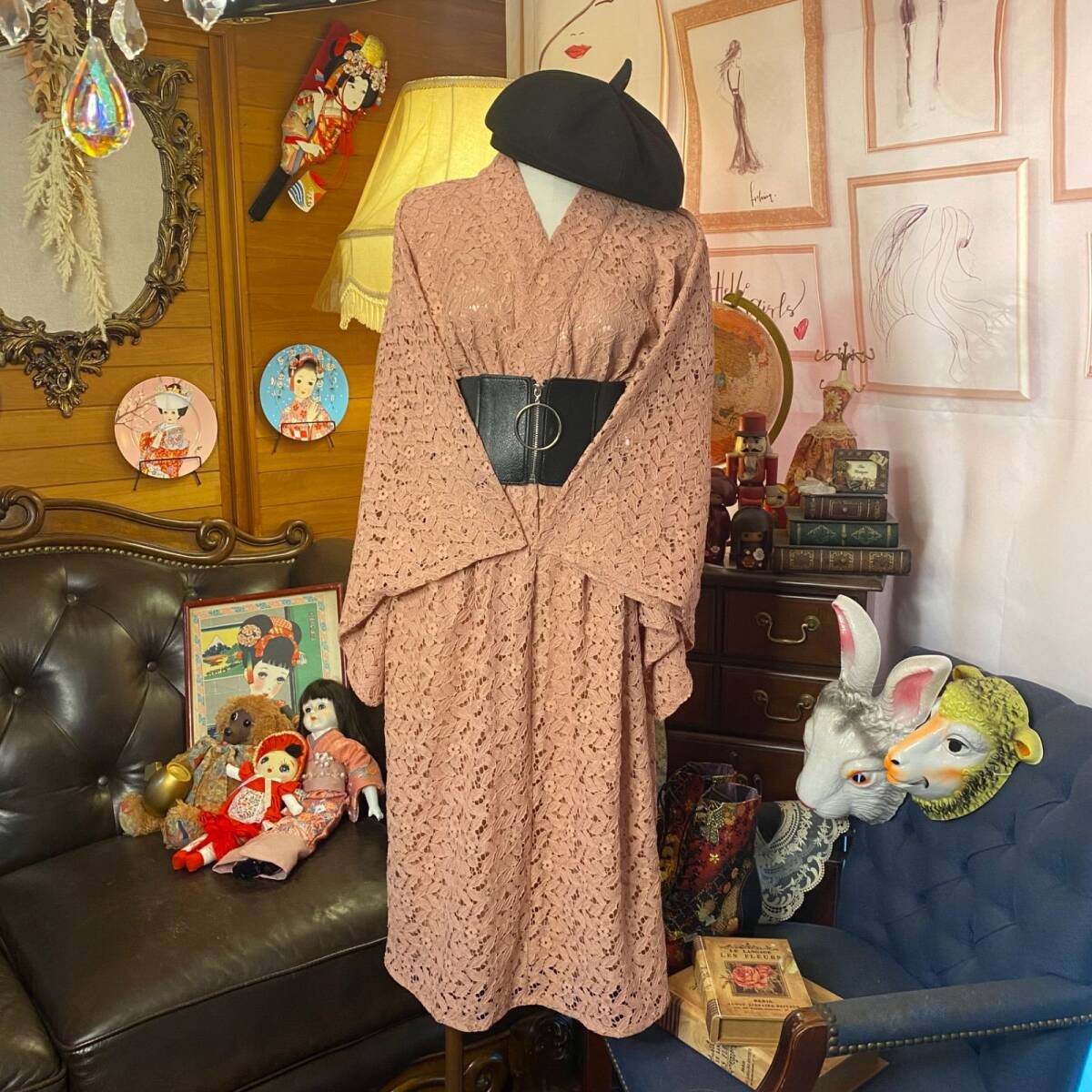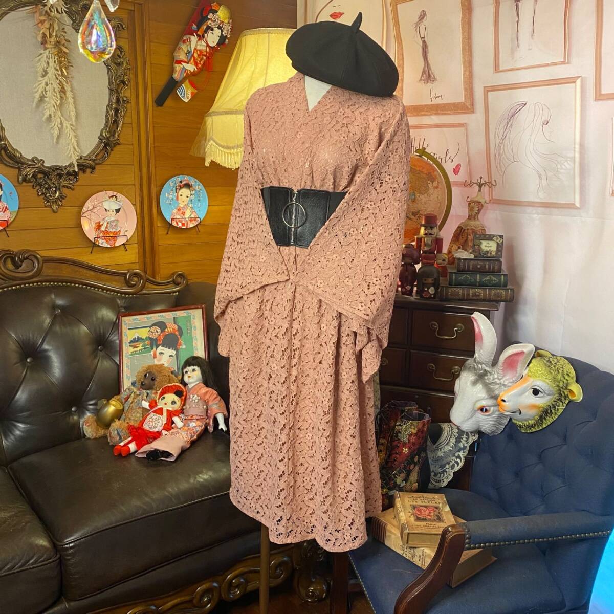 【 和洋折衷 総レース浴衣 リメイク ワンピース ドレス シルバーリングコルセット太ゴムベルト ピンク系 LW-2 】