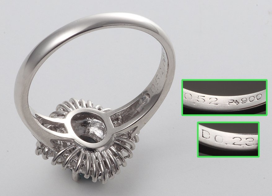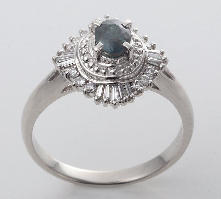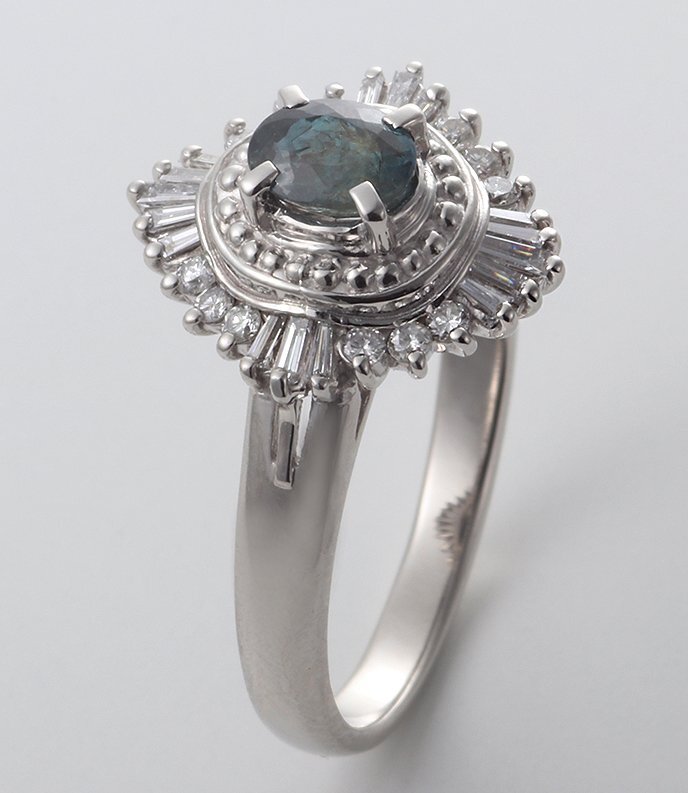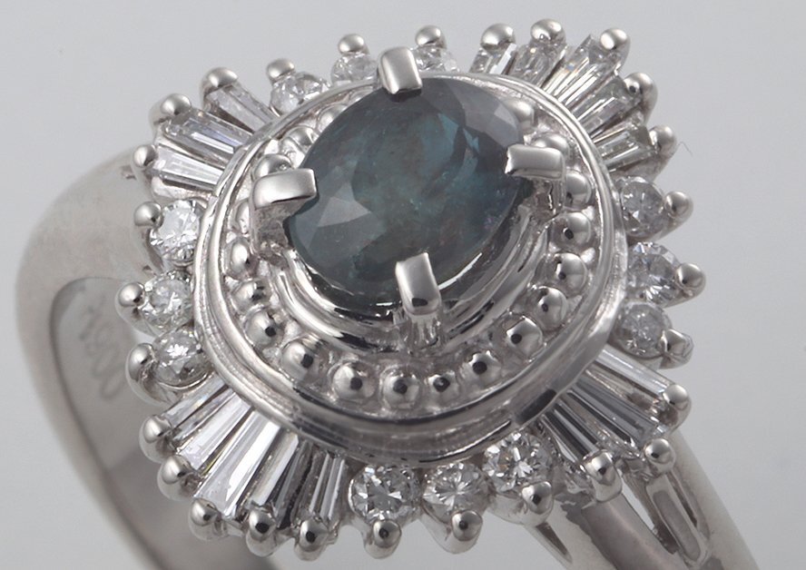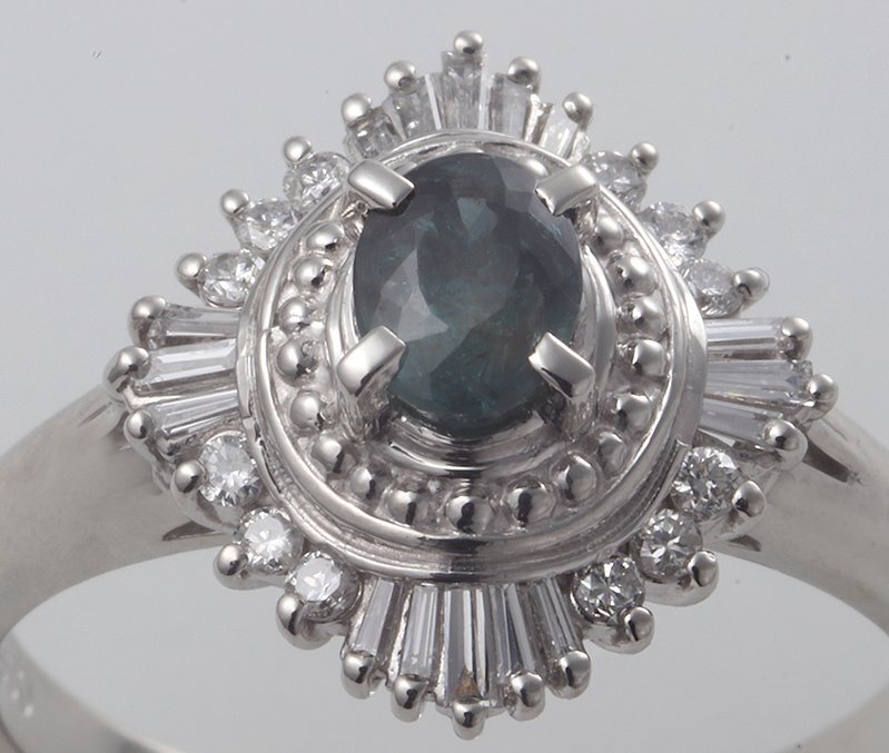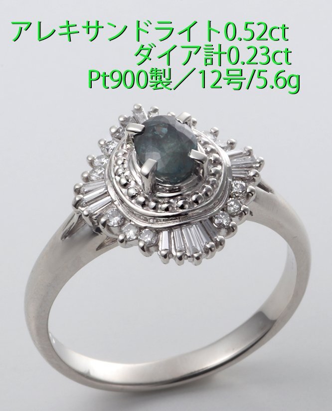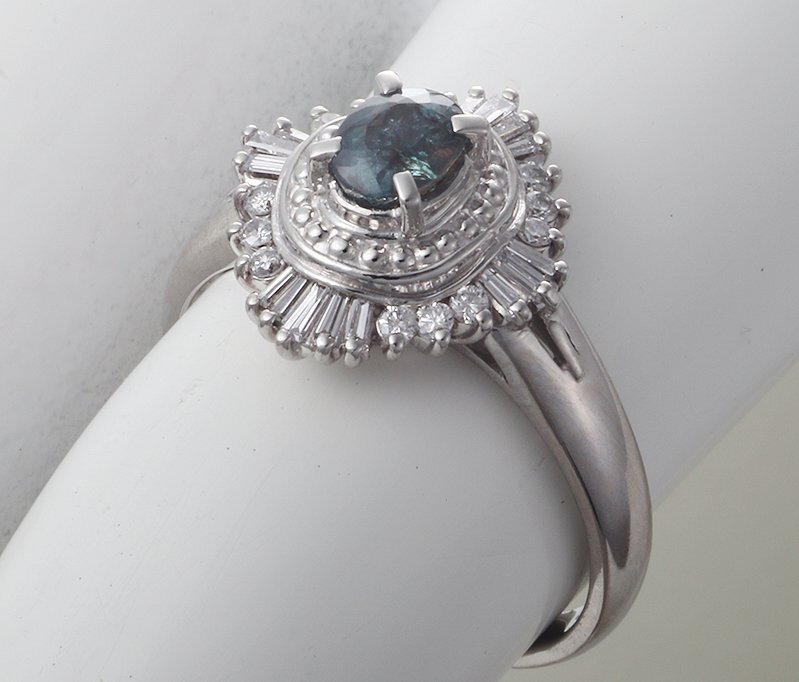 マテリアル | 天然アレキサンドライト0.52カラット(カラット刻印あり)、天然ダイア合計0.23カラット(カラット刻印あり)、プラチナ900製 |