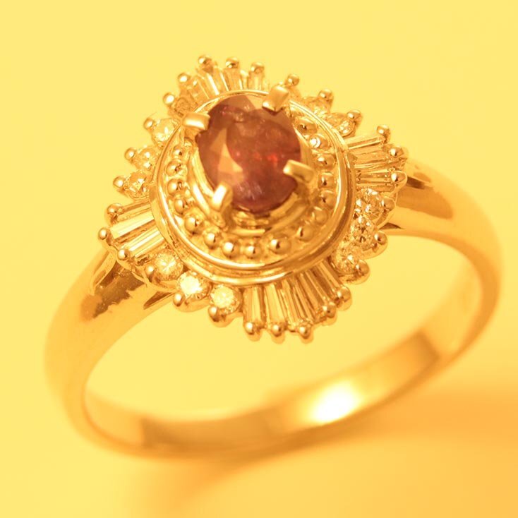 サイズ | 12号サイズ、アレキサンドライトの大きさ5.2X4.4ミリ、トップの宝石部分13.4X12.5ミリ、リングの全高24.2ミリ、リング全体の横幅19.1ミリ |