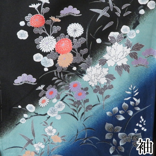 裾に向かってカラーのグラデーション柄を引き立てています。