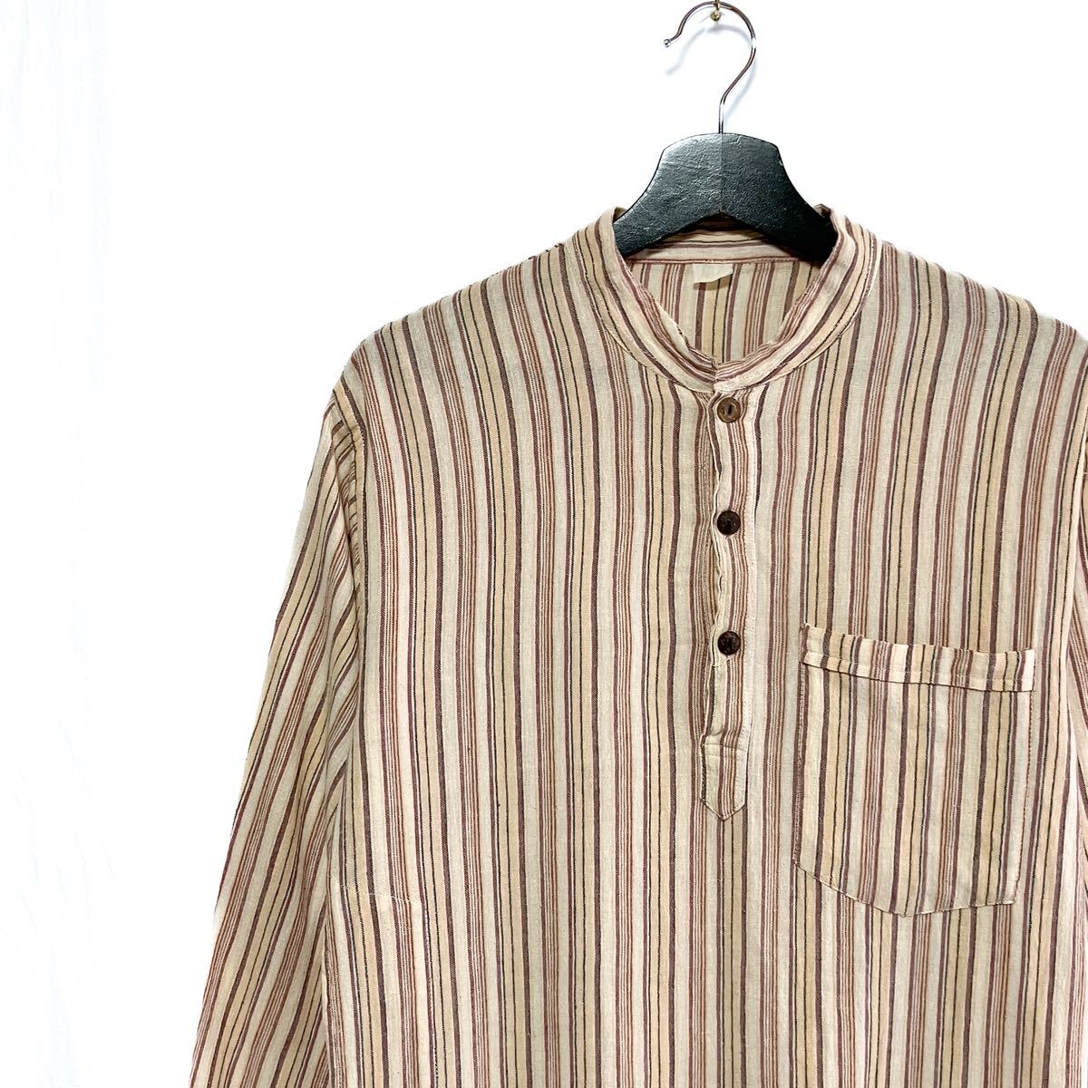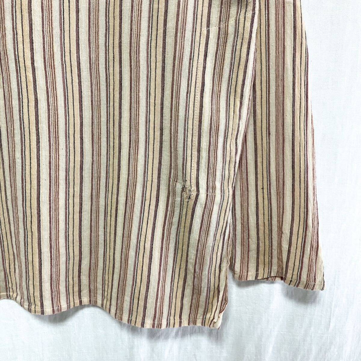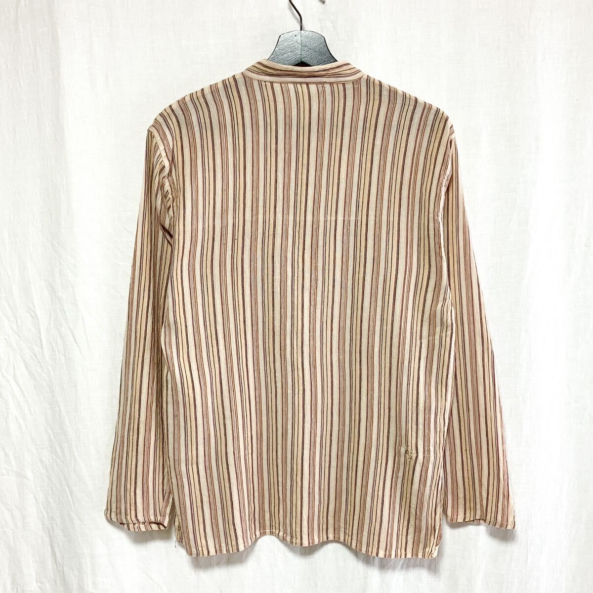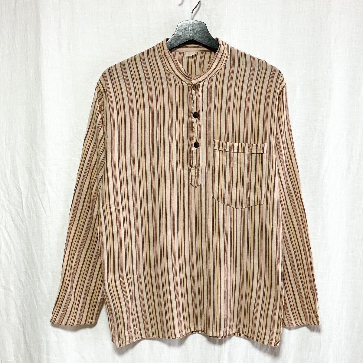 80s 90s ストライプ ネパールシャツ L相当 ユーロ ヨーロッパ アメカジ 長袖シャツ