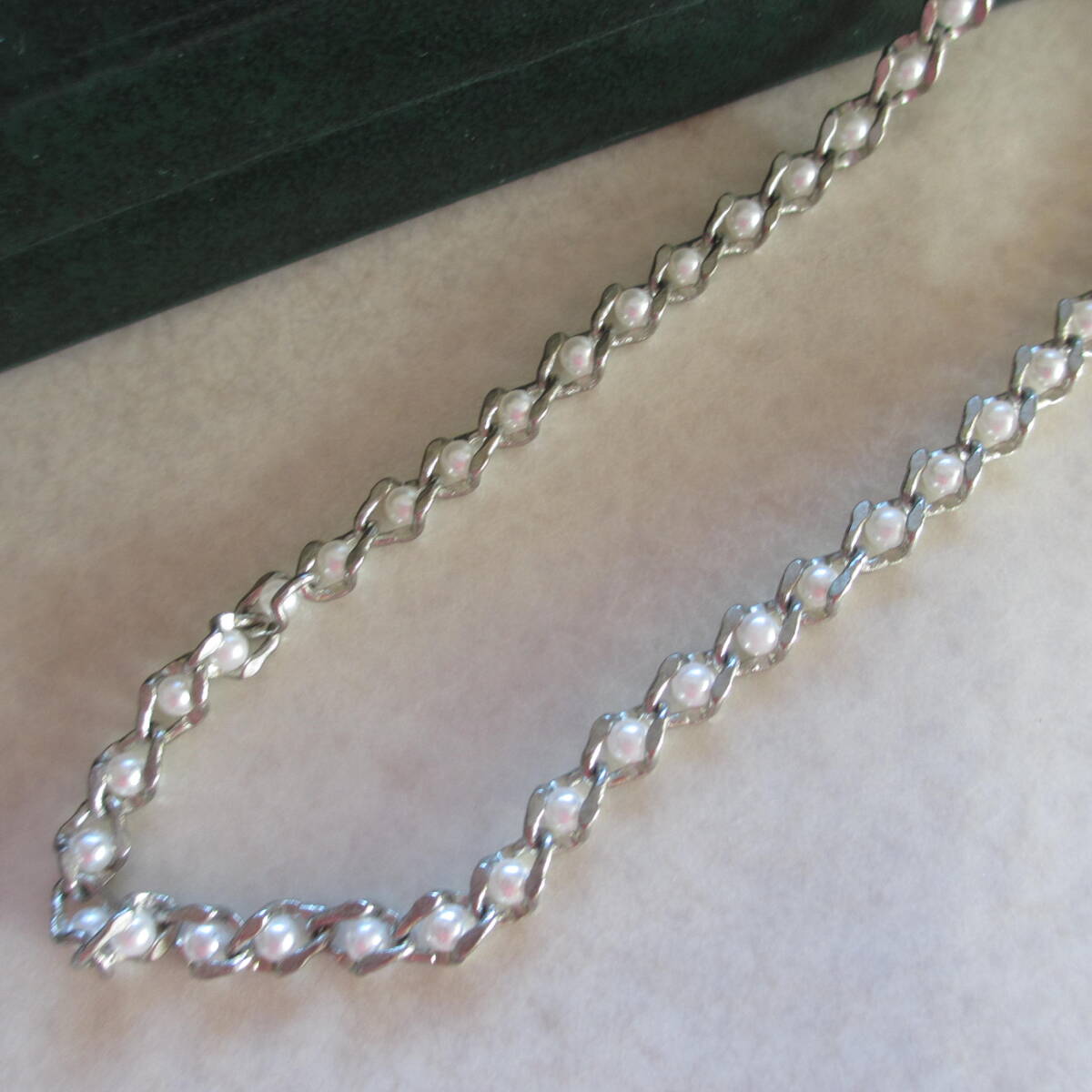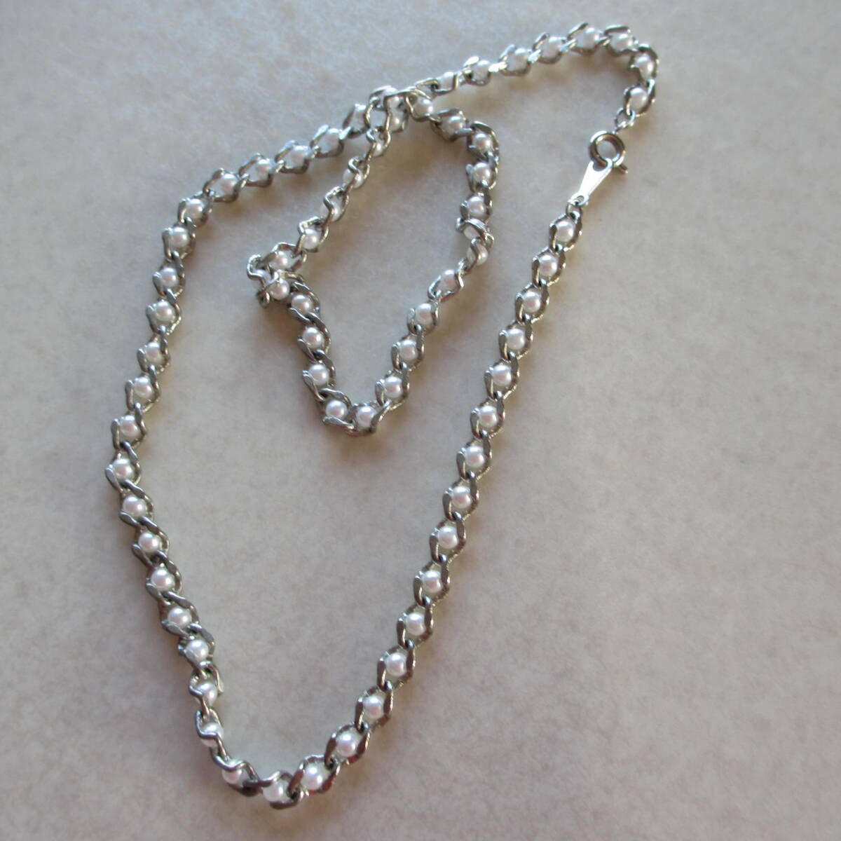 パールビーズ入りシルバーカラー・ネックレスです。