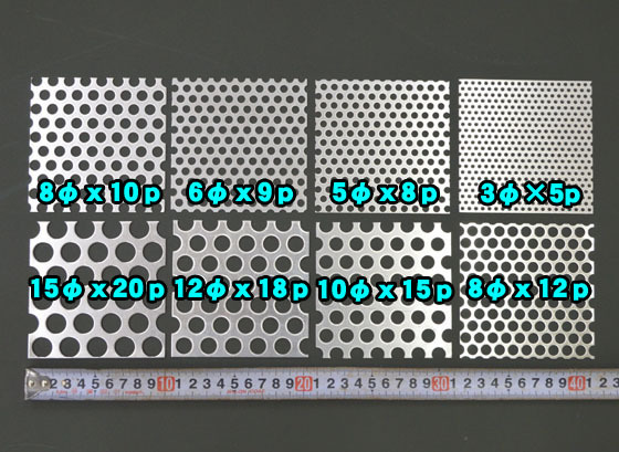 アルミ製パンチング板(材質A1050・A1100)生地材の各板厚・穴形状での
