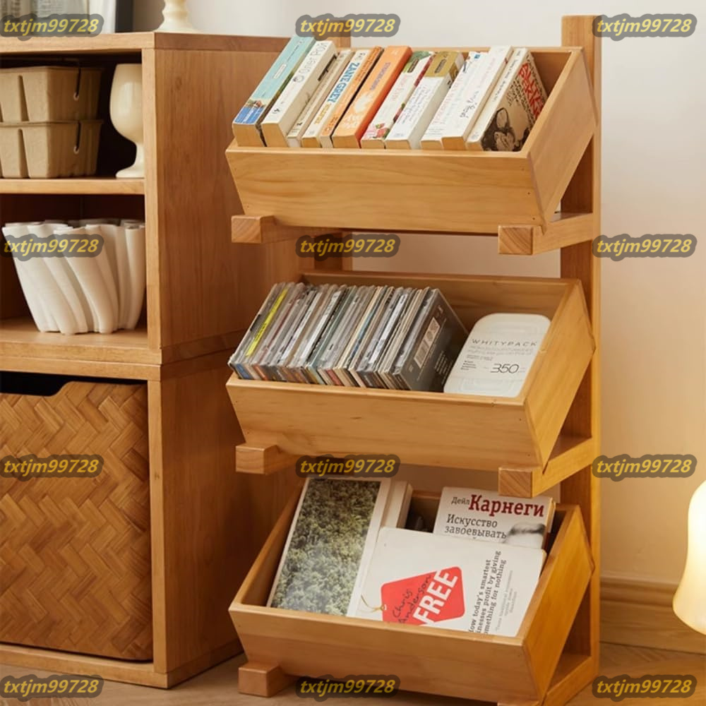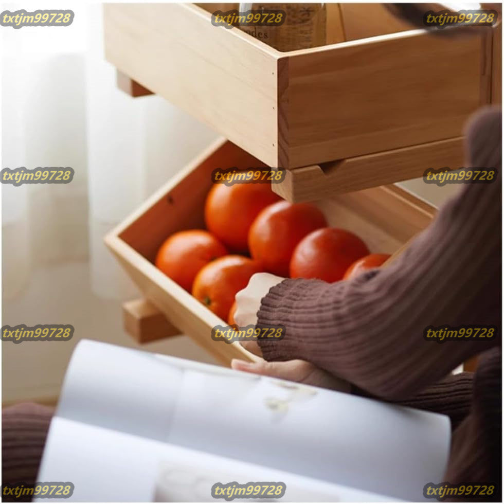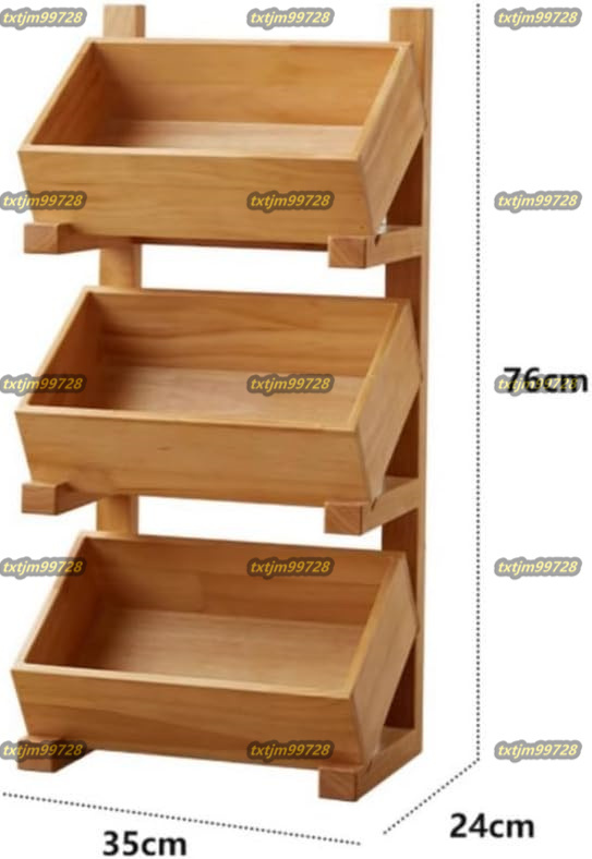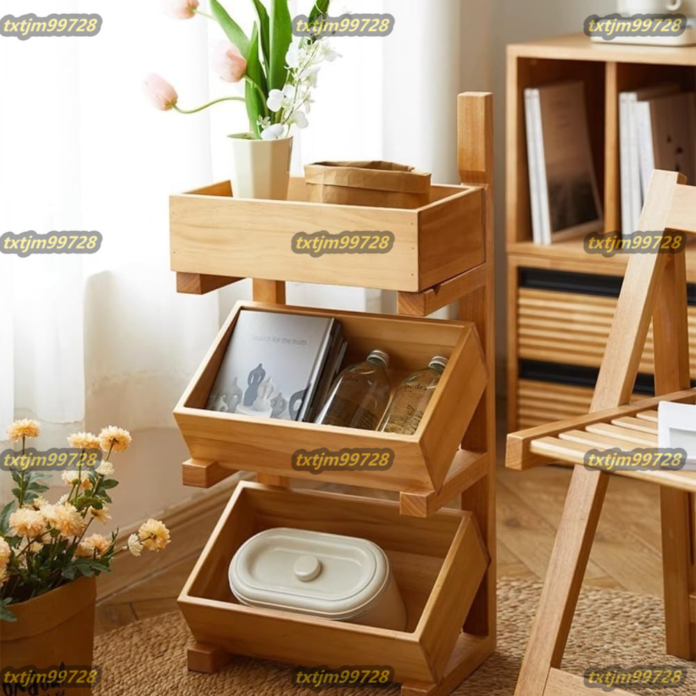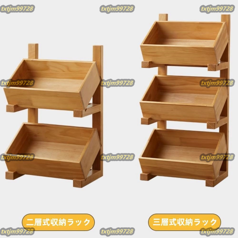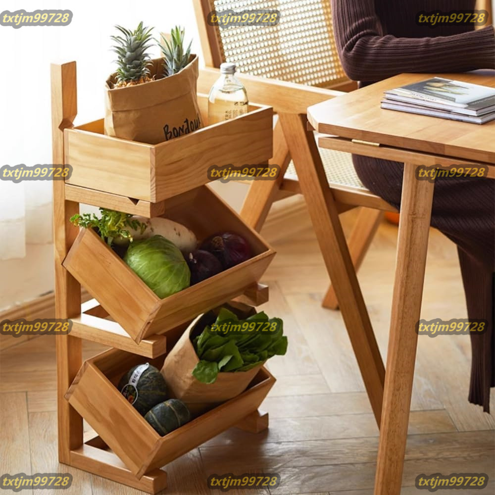実木置物棚 木製ディスプレイラック 青果 野菜 フルーツ 陳列台 陳列棚 収納棚 斜めシェルフ 組立簡単 多機能フレーム キッチン (三層)