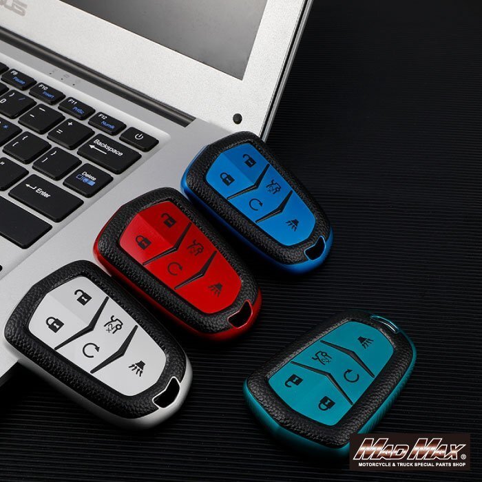 キャデラック専用 レザー調 TYPE A 5ボタン式 TPUソフト スマートキーケース ブルー/XT4 XT5 XT6 エスカレード【メール便送料210円】