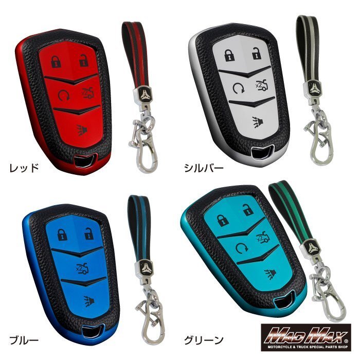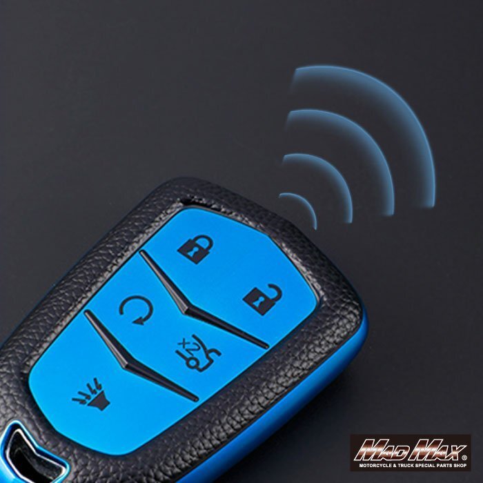 キャデラック専用 レザー調 TYPE A 5ボタン式 TPUソフト スマートキーケース ブルー