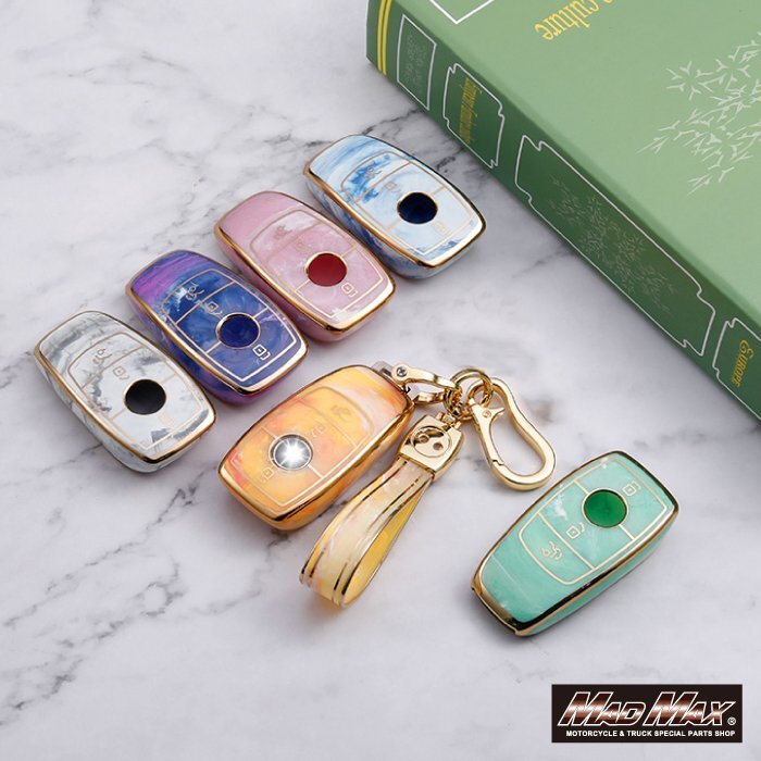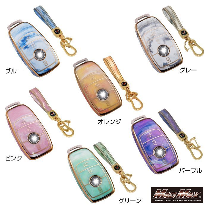 メルセデスベンツ専用 大理石調 TYPE B TPUスマートキーケース オレンジ。