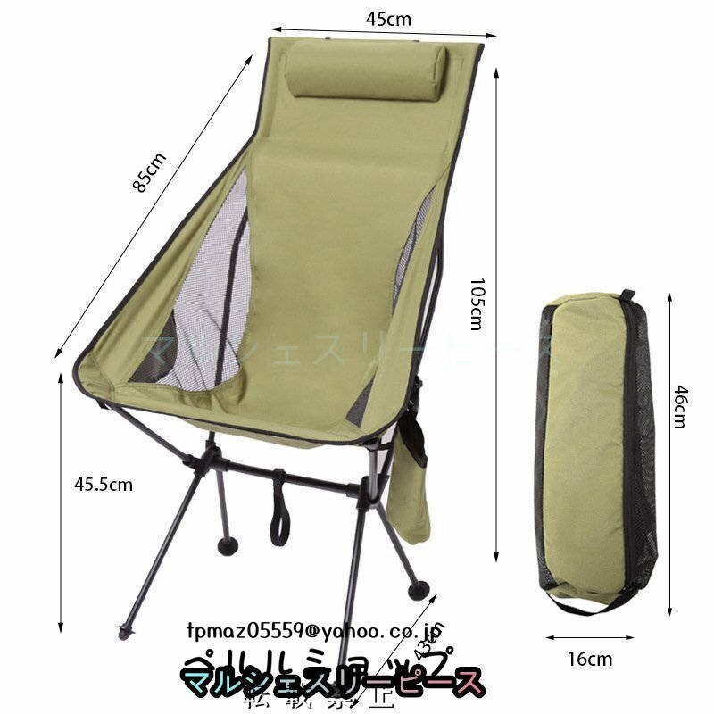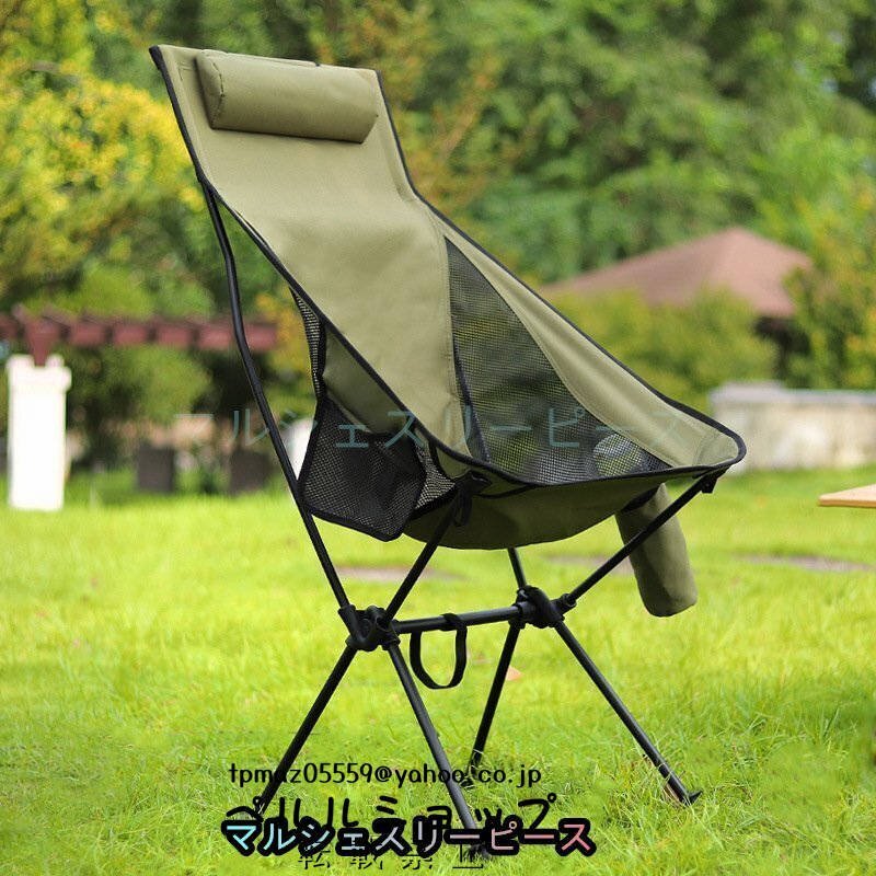 アウトドア チェア 枕付き 折りたたみ ポケット付 軽量 コンパクト 椅子 耐荷重150kg 携帯便利 お釣り 登山 キャンプ 収納袋付属 グリーン