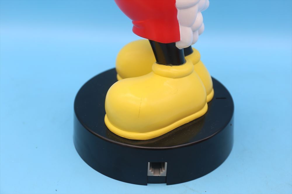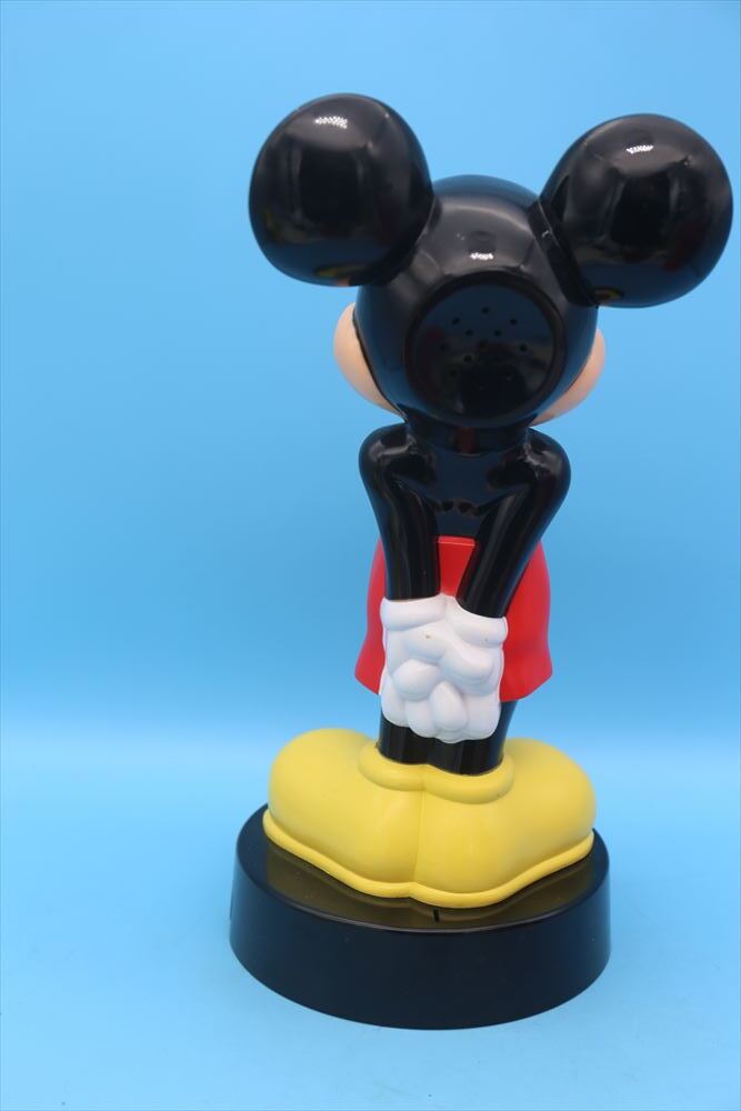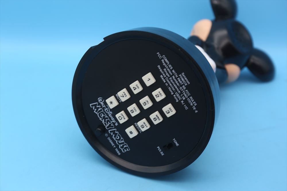 1980年代ミッキーマウスの電話機です。後ろに手を組んだミッキー。底にボタンが付いて持ち上げて使用する物ですが、持ち上げると「プー」っと音が鳴りだしてまうので電話として使用できる状態ではありませんでした。コレクションやディスプレイとしてお考え下さい。