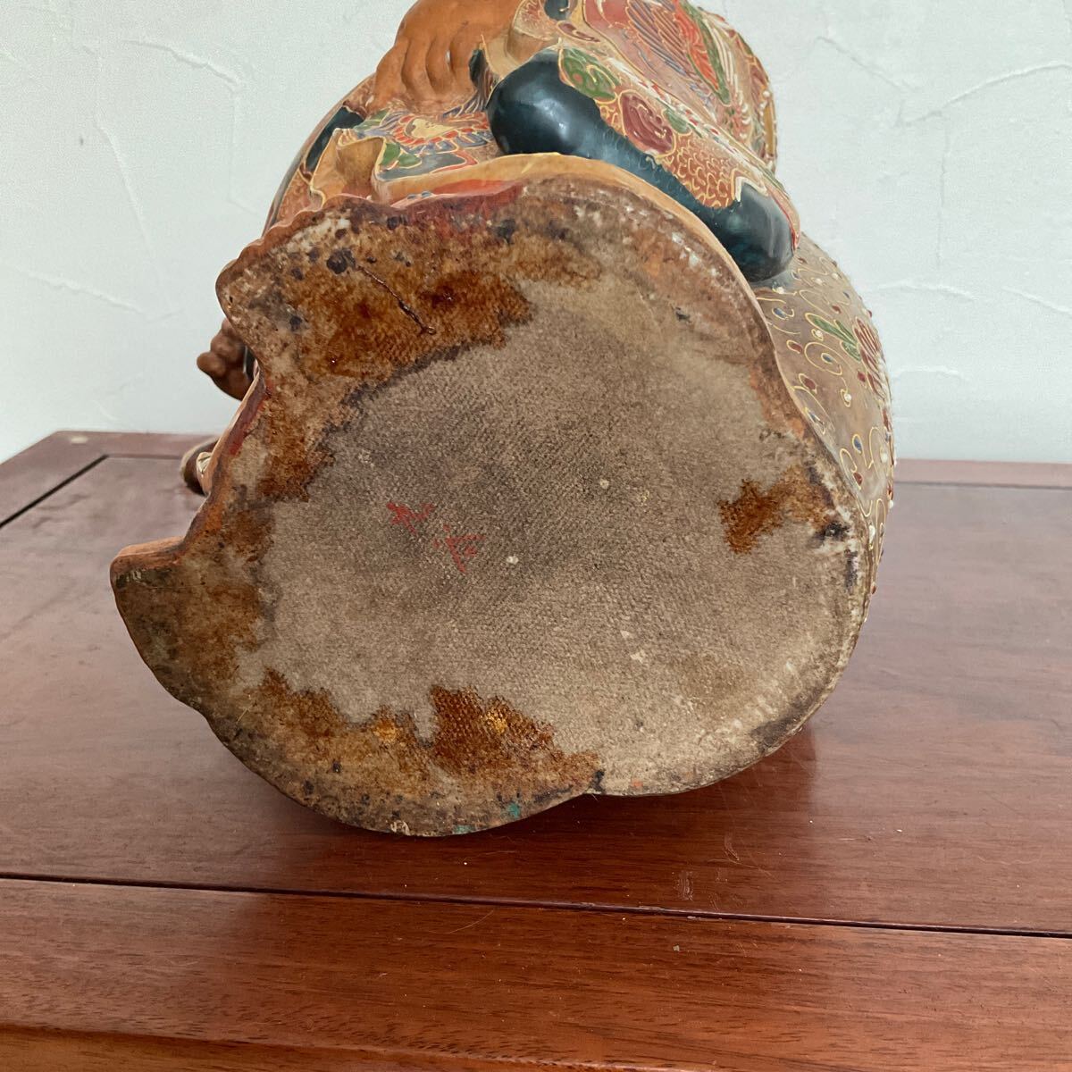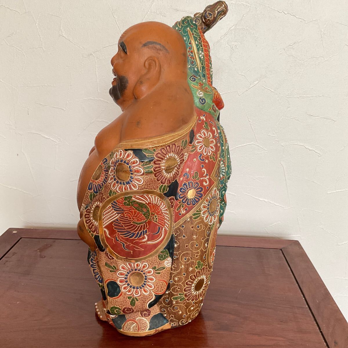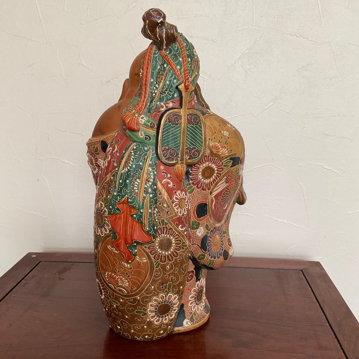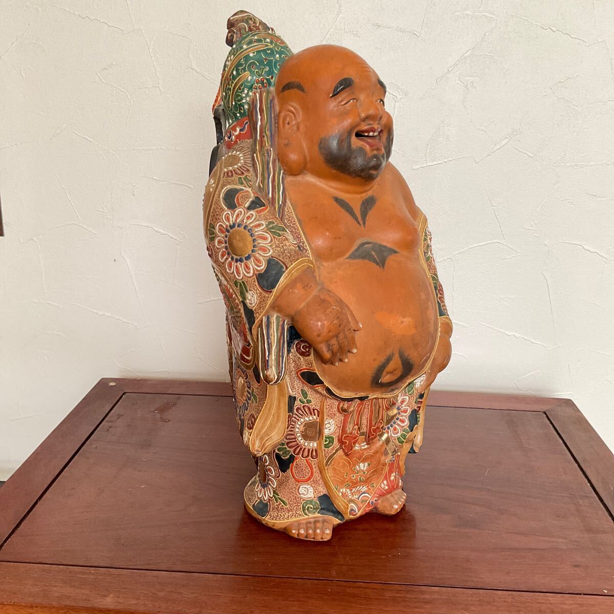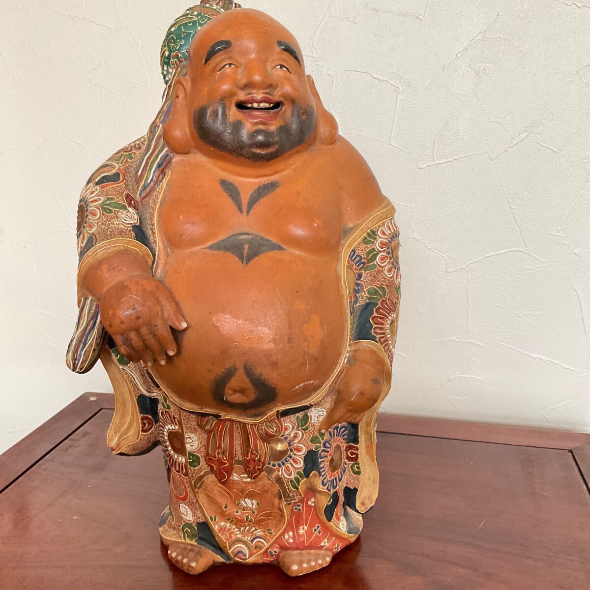 送料は無料です。古い九谷焼の布袋様です。戦前昭和11年生まれの兄の誕生日にお祝いでもらった布袋様らしいです。 高さ35cm幅約20cm重さ2820g 経年による汚れ変色があります。ヒビ キズ等はありません。簡単にホコリを拭いた程度の掃除をしました。金彩の剥がれ釉薬の剥がれも無いですが画像を良く見て確認後納得のうえ入札をお願いします。落札後はノークレームノーリターンでお願いします。発送はおてがる配送ゆうパック(日本郵便)80サイズ(送料無料)にて入金を確認次第速やかに発送致します。落札後は速やかに取引情報連絡をお願いします。無事に届きましたら速やかに受け取り連絡をお願いします。宜しくお願いします。
