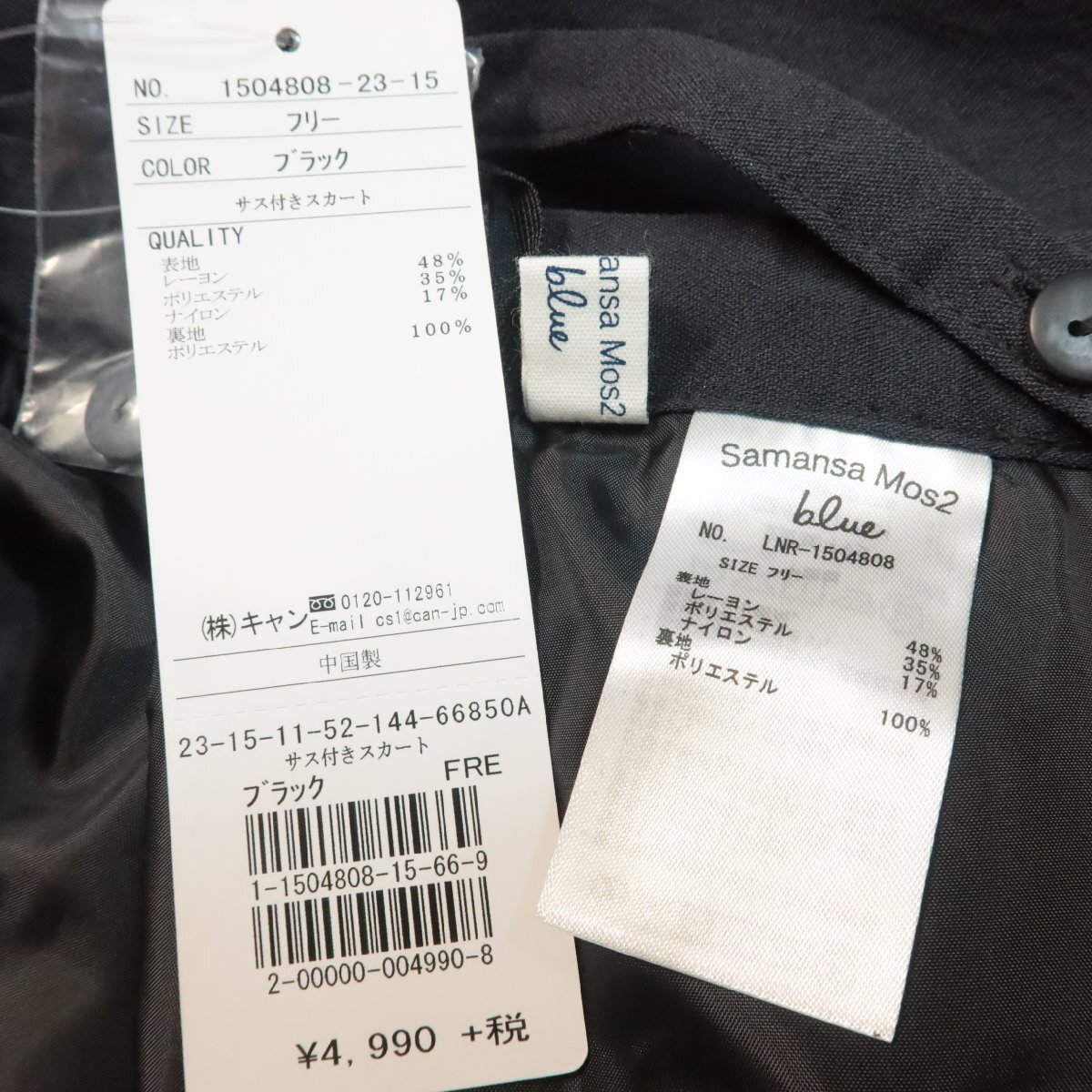 【新品・4,990円のタグ付】SM2 ブルー★大人可愛い!サス付きスカート サイズフリー ウエスト後ろゴム♪黒系 z8649