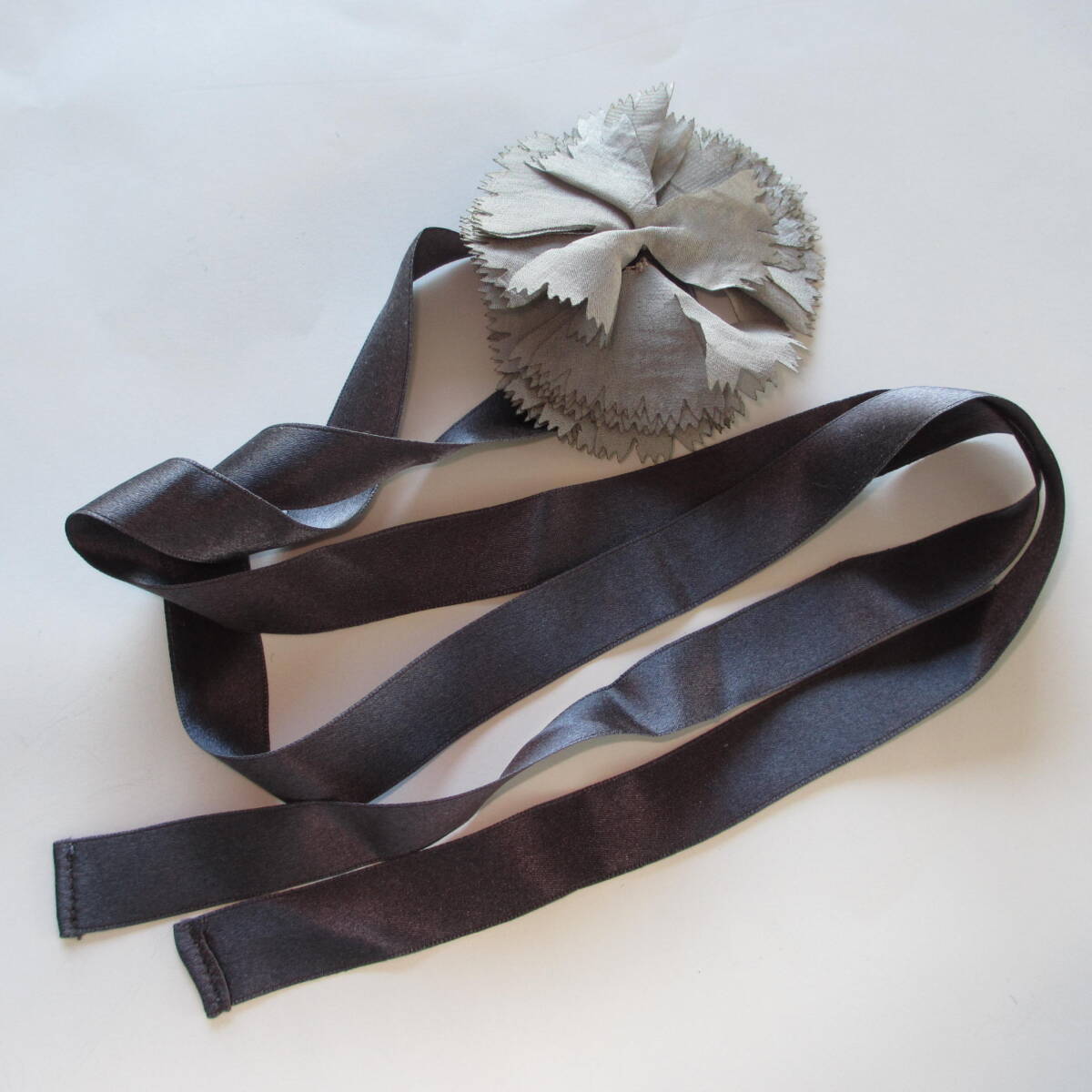 リボン・サイズ全長104㎝・幅1.5㎝です。 コサージュ・直径・約7㎝です。