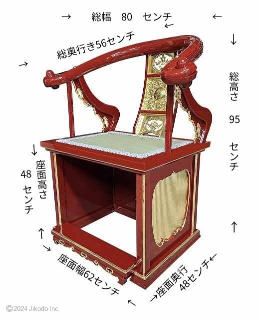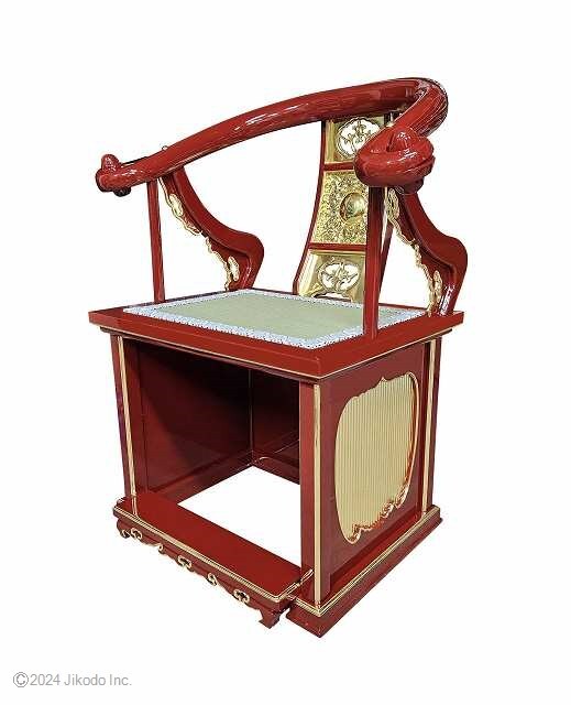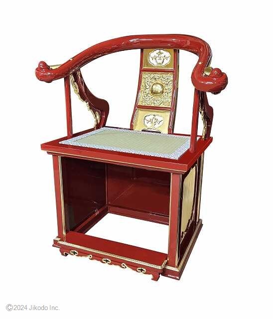 【寺院仏具】朱塗り 背もたれ付きの椅子型曲録 足置き付 国内自社工場にて製作 木製高級寺院仏具通販(受注生産品)(商品番号10251s)_