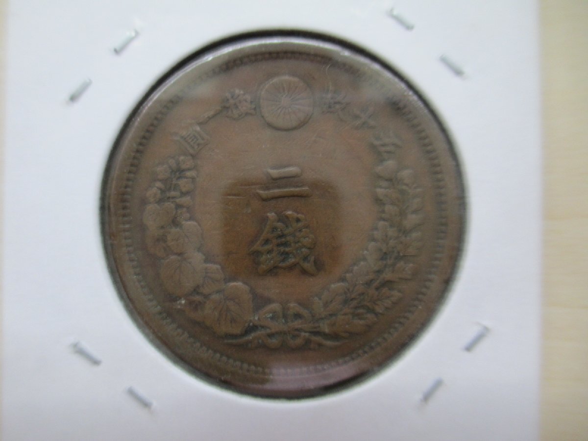 【近代銭】2銭銅貨 明治14年(1881年) 流通品 ★ 硬貨 コイン★コレクター品【QQ24080814】
