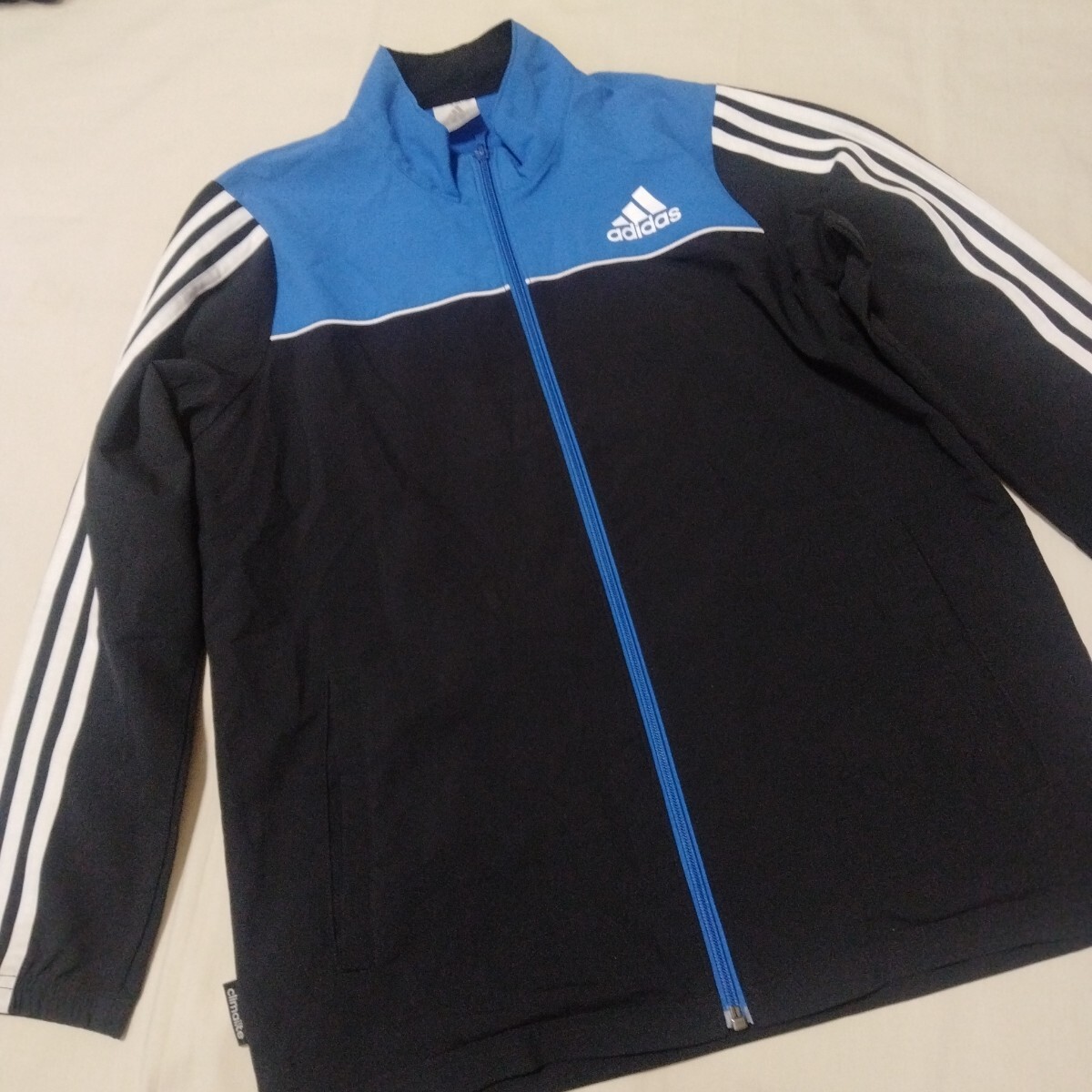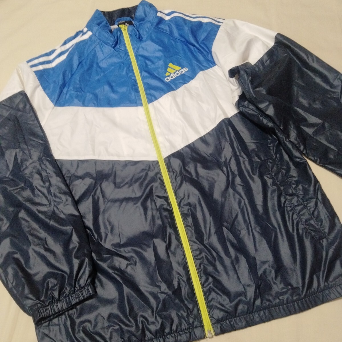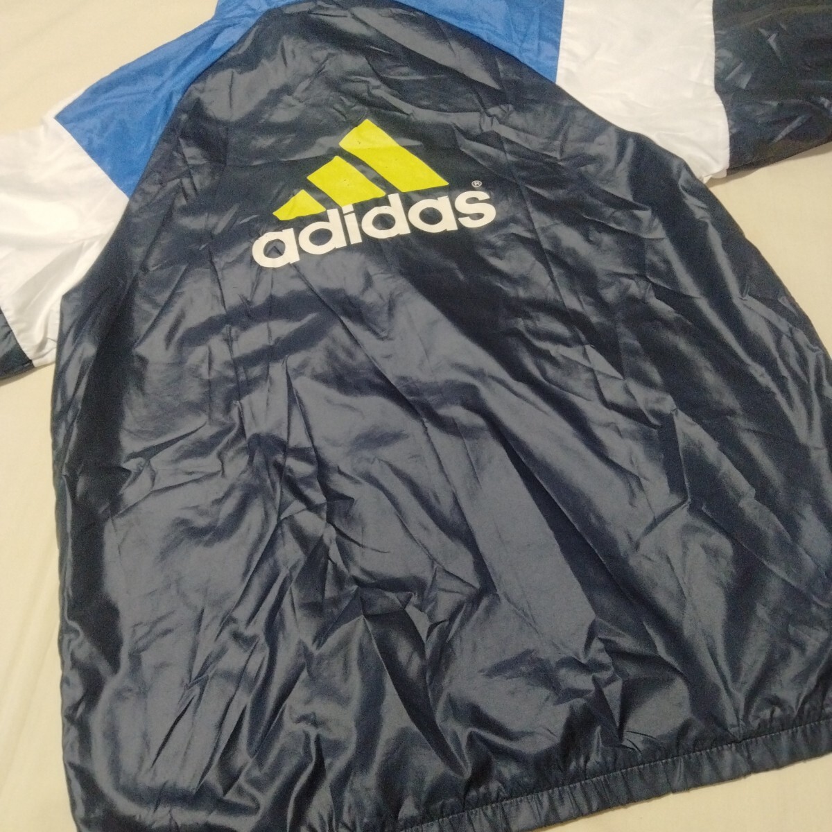 薄手のポリエステルジャンパーは裏メッシュです。こちらはブランドロゴに剥がれがございます。