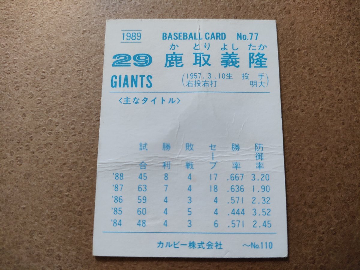 鹿取義隆 読売ジャイアンツ '89プロ野球カード カルビー