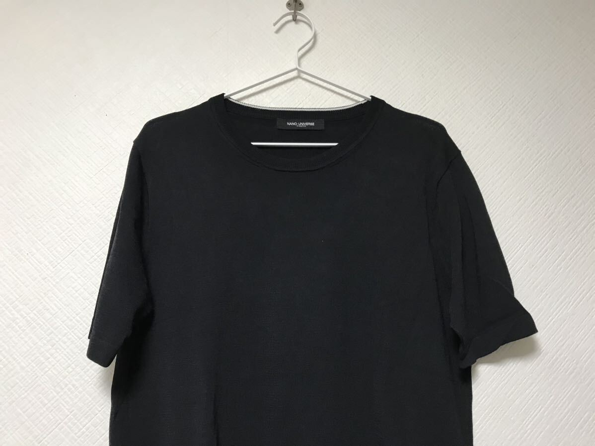 商品名:美品本物ナノユニバースnanouniverseレーヨンナイロンサマーニット半袖Tシャツメンズサーフアメカジミリタリーワークビジネススーツモードゴルフ黒ブラックM
