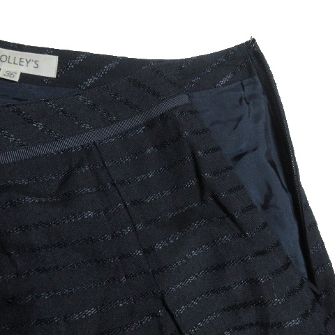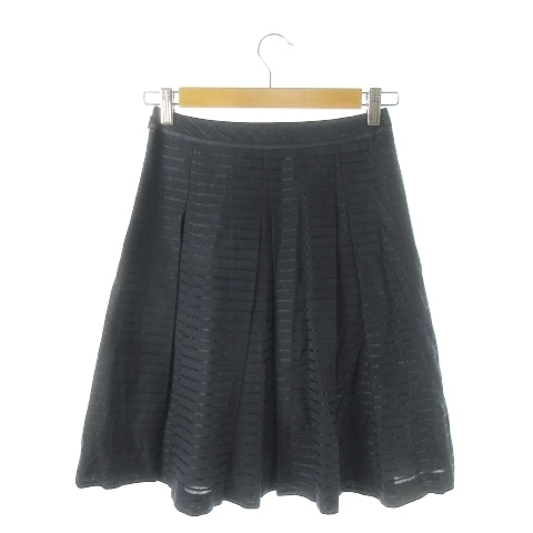 ノーリーズ Nolley's スカート フレア ひざ丈 ボーダー 36 紺 ネイビー /AO12 レディース