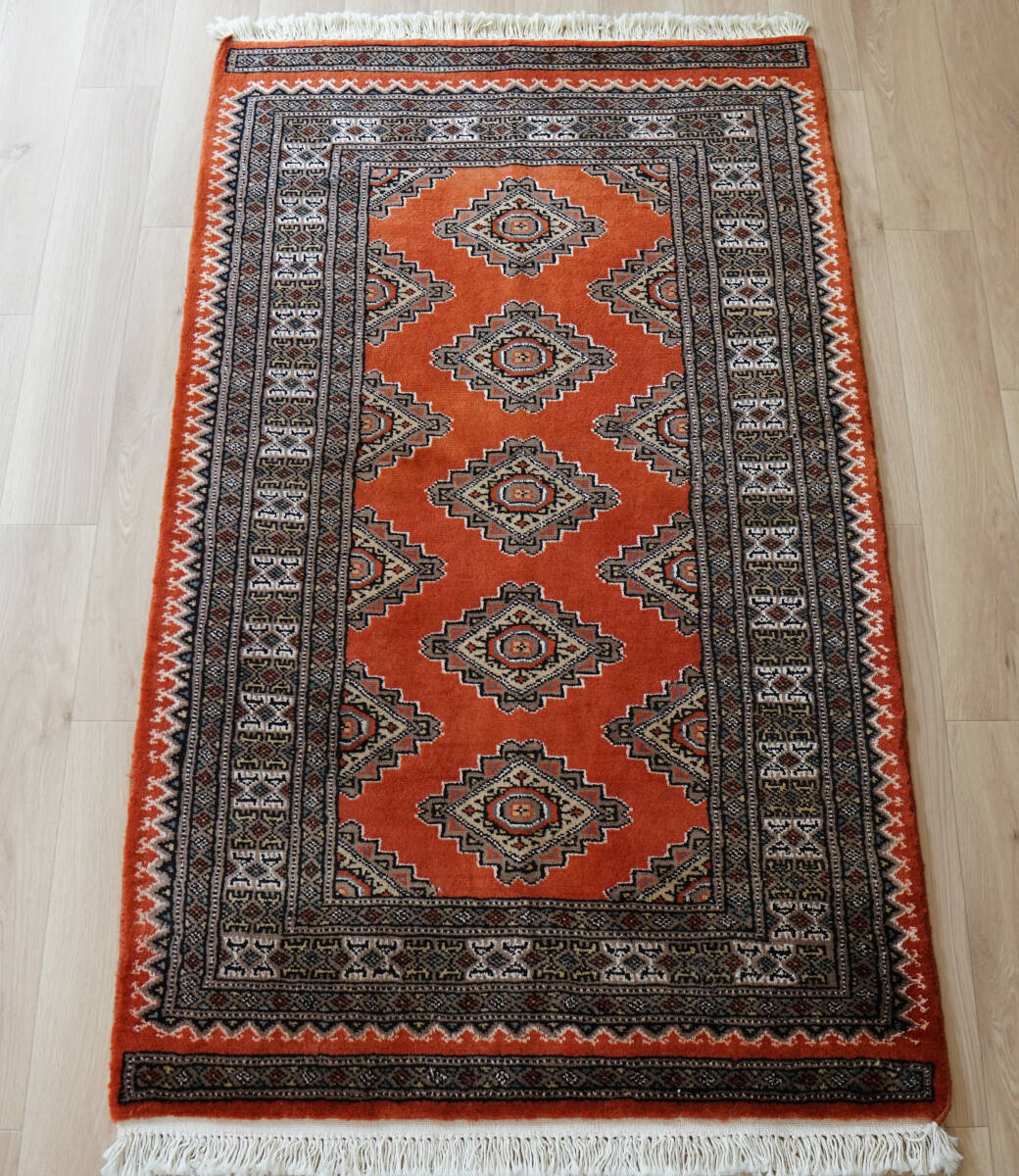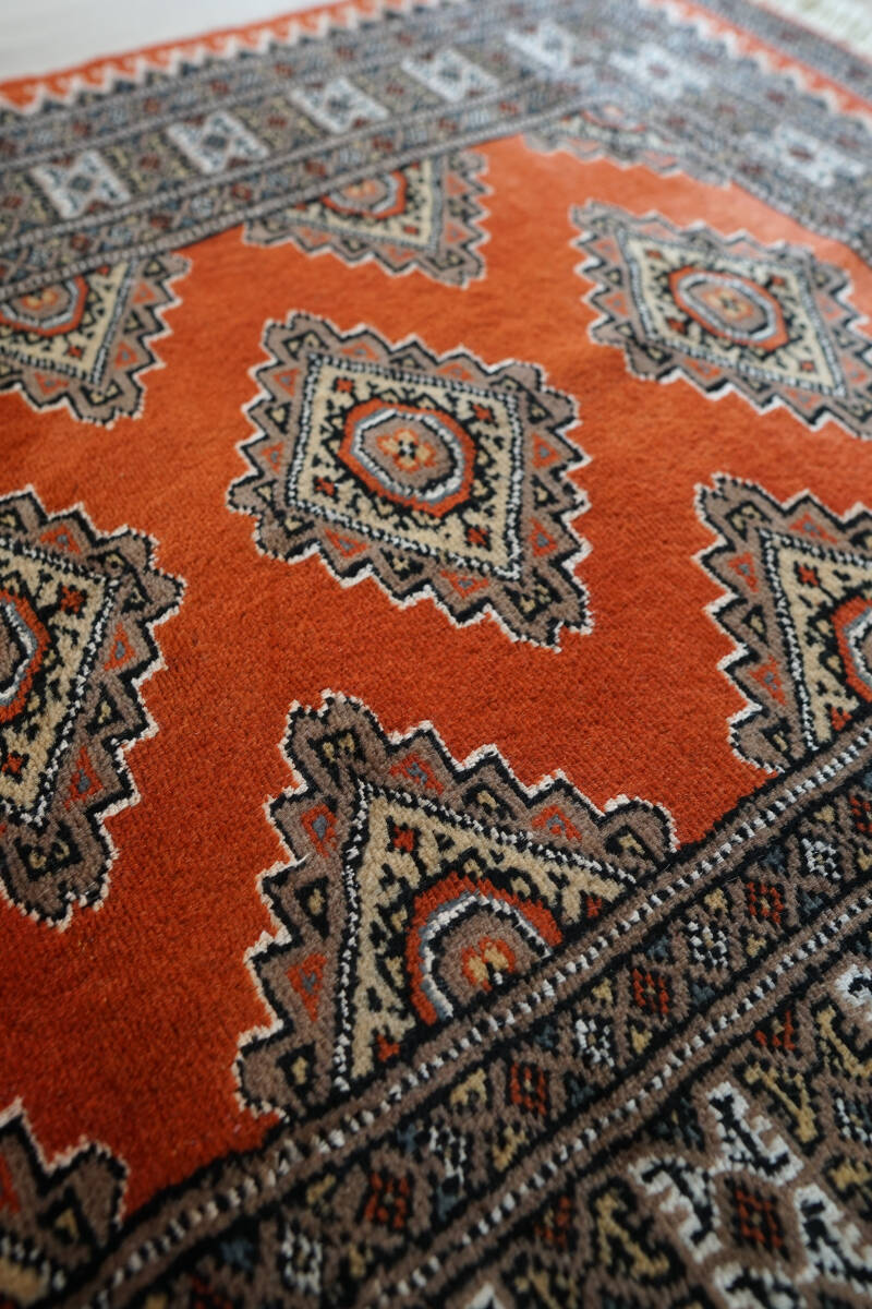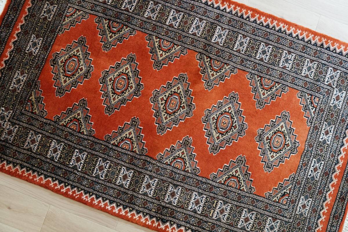 132×80cm パキスタン手織り絨毯 トライバルラグ