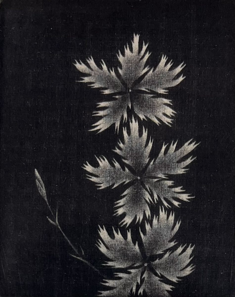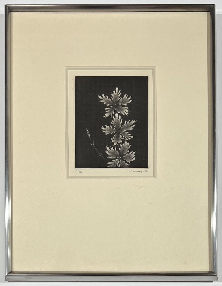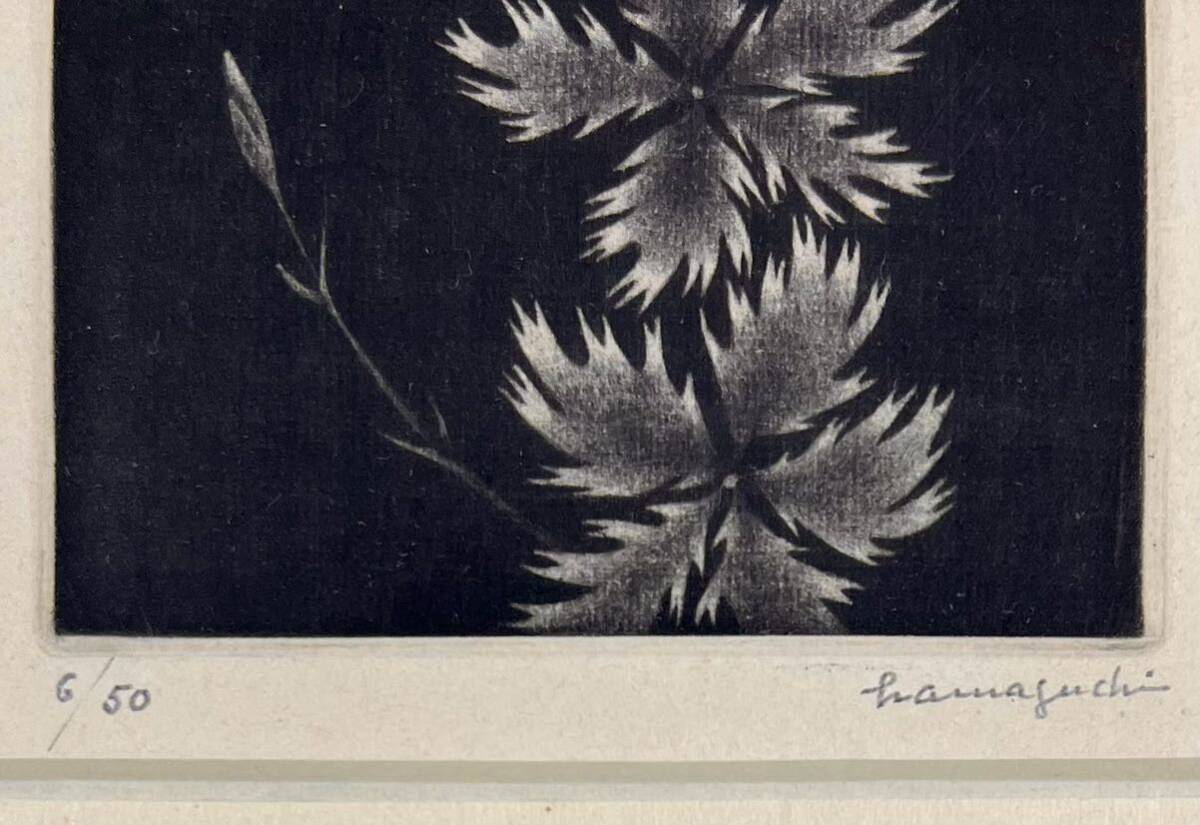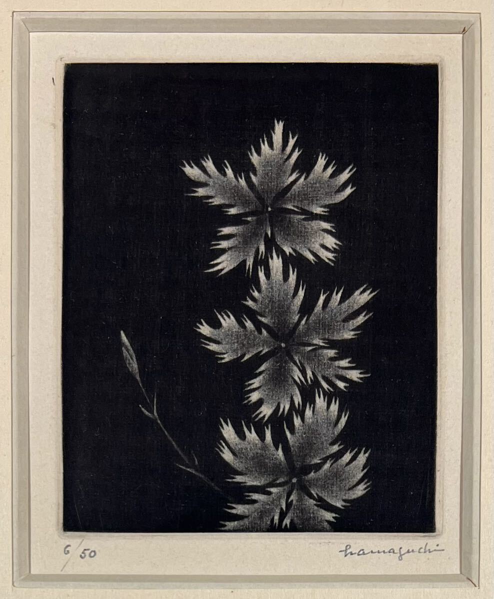 浜口陽三銅版画額「かわらなでしこ」 Yozo Hamaguchi 夫人南桂子とともに活躍した銅版画家の静謐な黒の濃淡美しい貴重作 美品 真作