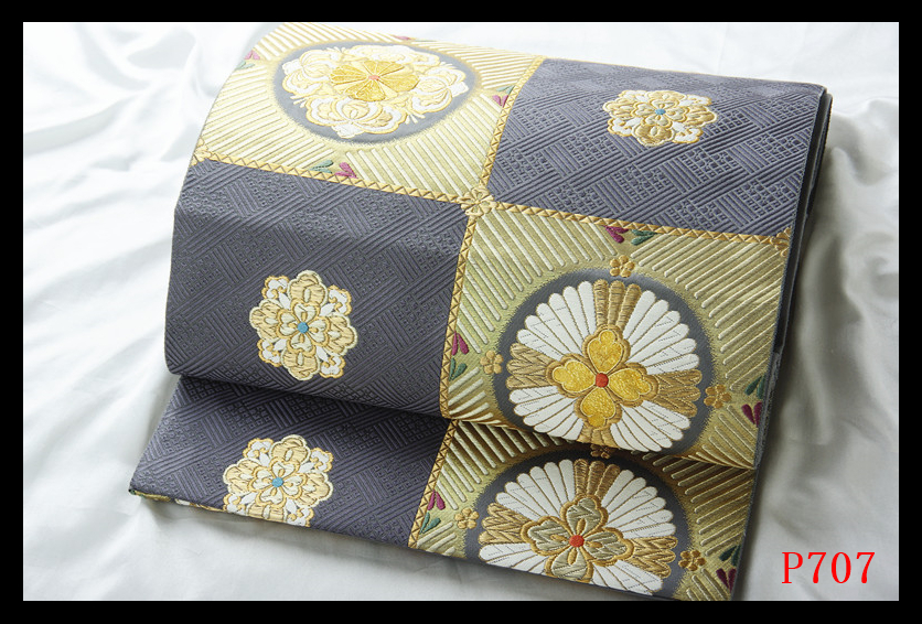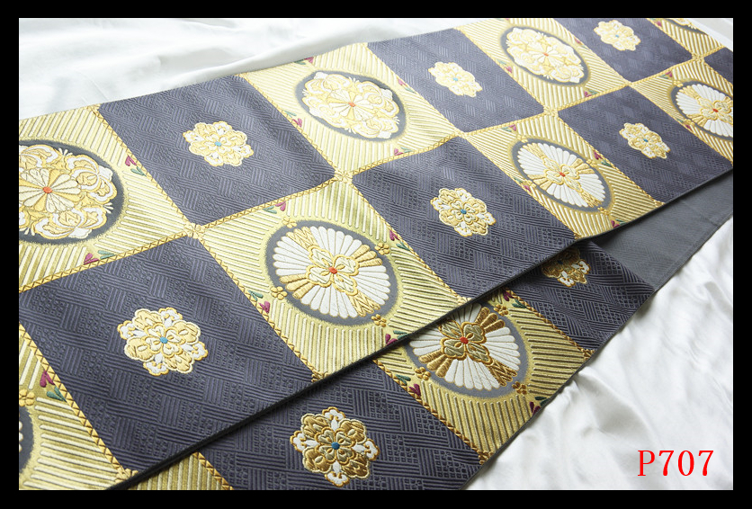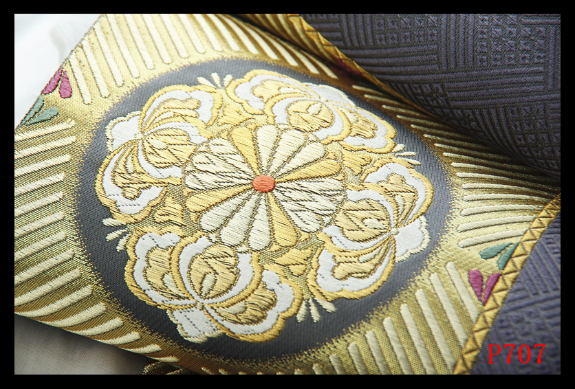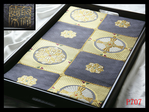 P707厳選西陣 名門じゅらく 振袖可 市松唐花紋 鉄御納戸色地 正絹純金糸六通高級美術袋帯 ◇検◇簪着物名古屋帯帯締め