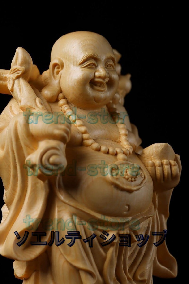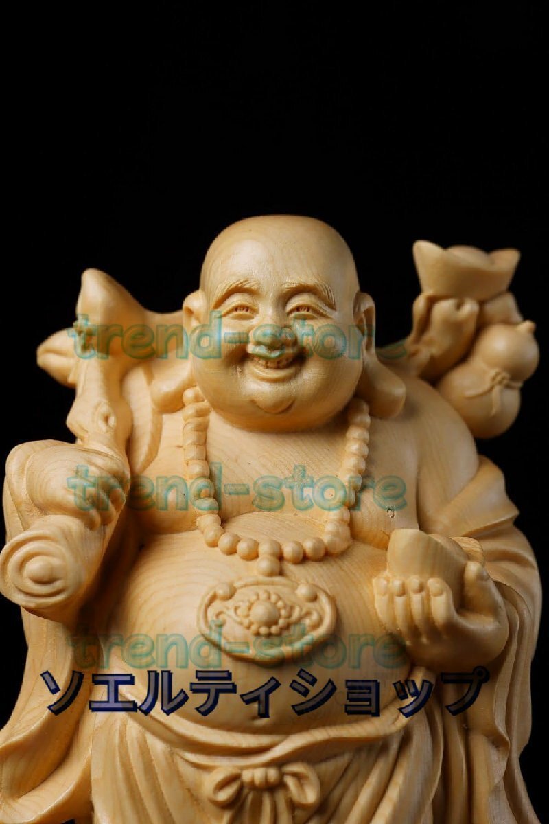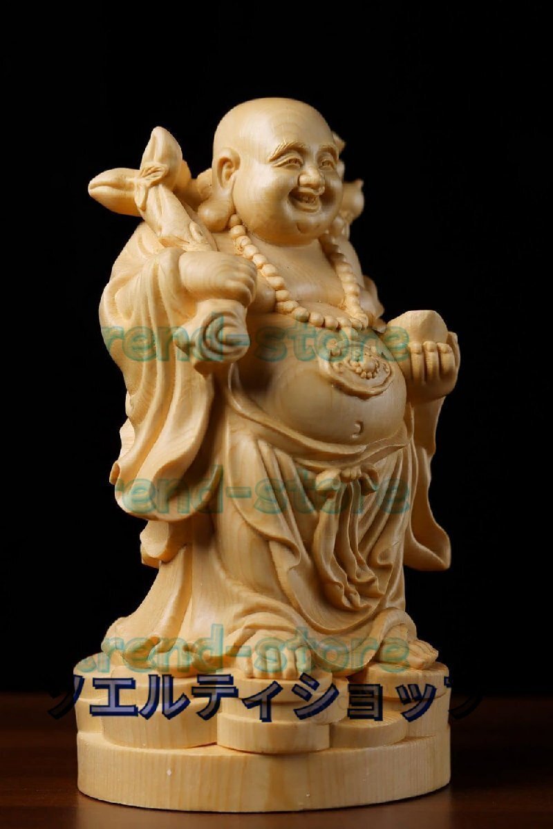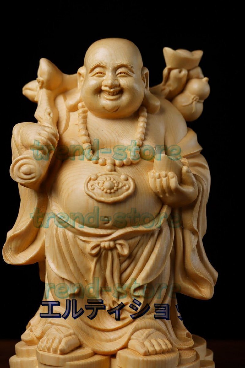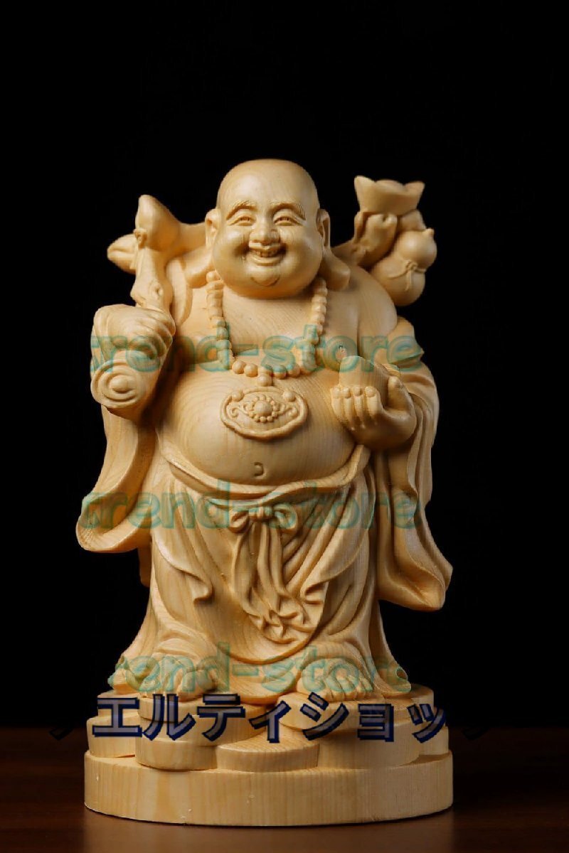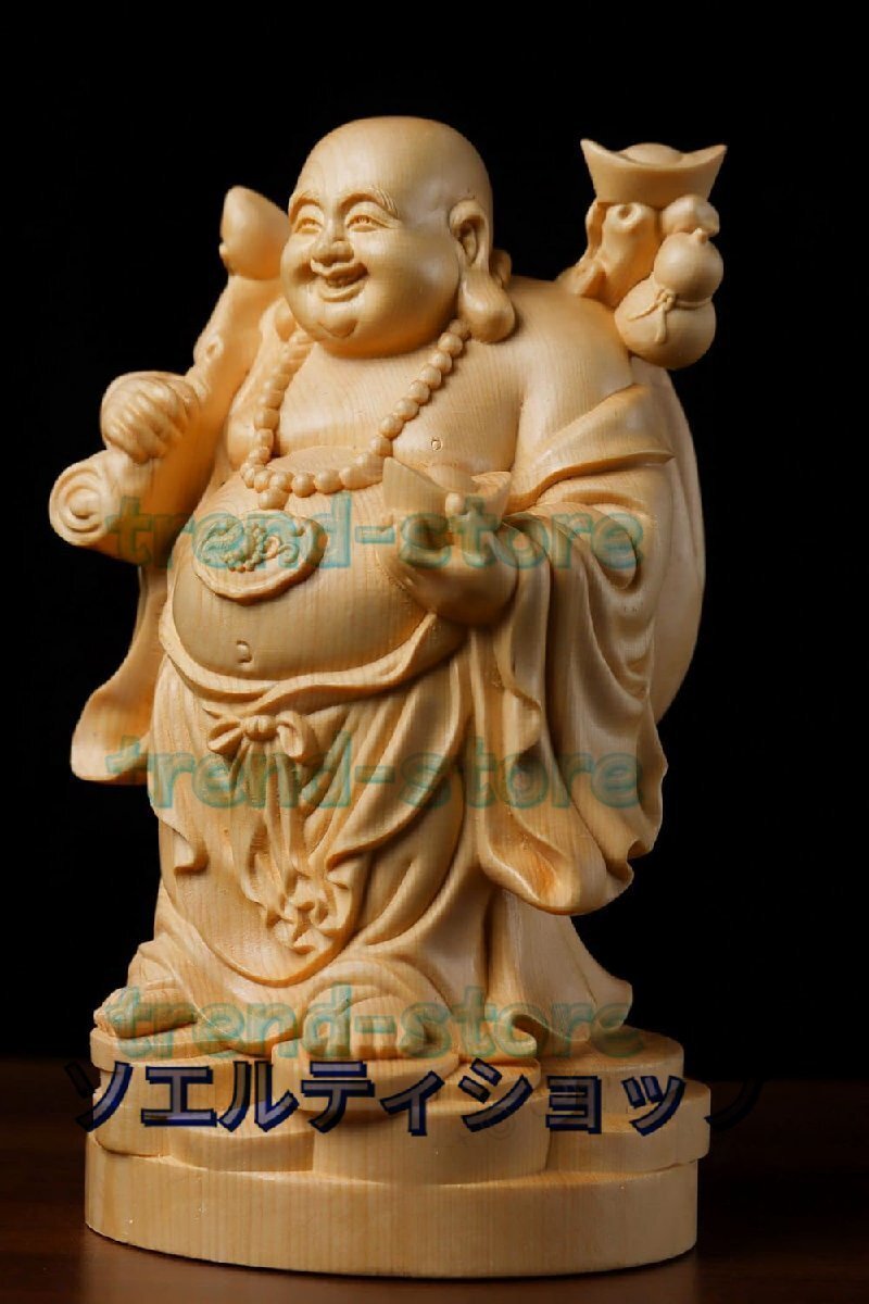 木彫り仏像 布袋さま 置物 桧木製高級木彫り 弥勒菩薩 仏像 彫刻仏像 <仏像・開運縁起物・幸運置物> 布袋様の置物 七福神 置物