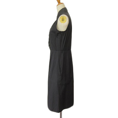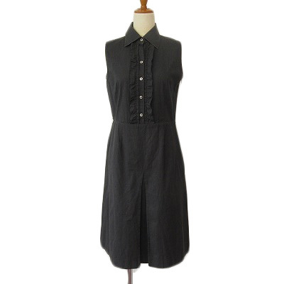 ニューヨーカー NEWYORKER ワンピース シャツワンピ ドット フリル ノースリーブ 9 黒 ブラック レディース