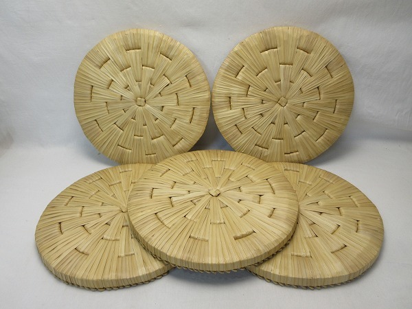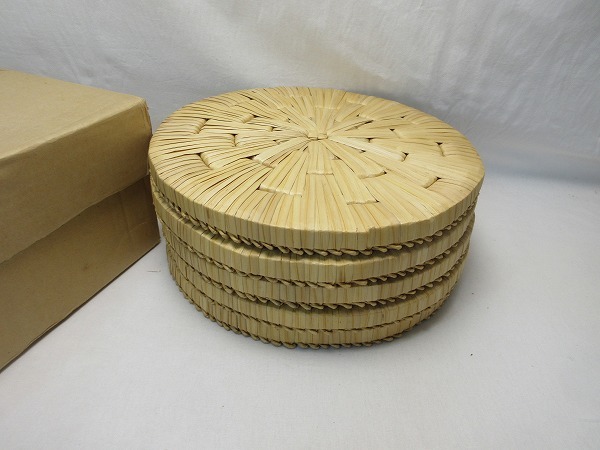 | 604779 【 ほぼ未使用 茶道具 露地道具 円座 5客揃 藁竹 紙箱 】 検)露地道具 水屋道具 茶懐石 座布団 天然素材 座具 敷物 茶道 点茶盤 ⅲ | ||||