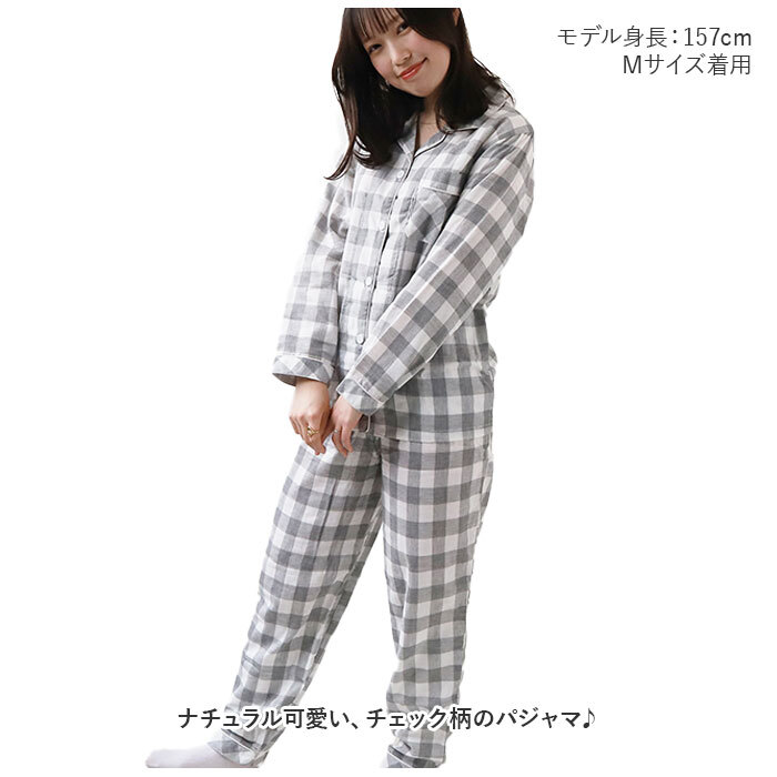 ・薄手の長袖パジャマ上下セット。吸水性・通気性に優れ、程よい保温性もあるので、寒い時期はお手持ちのカーディガンなどと組み合わせることで、ロングシーズン活躍!