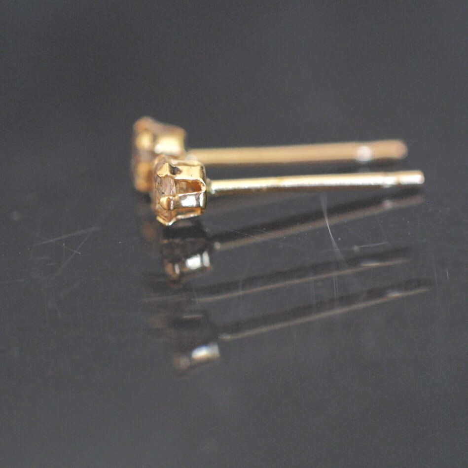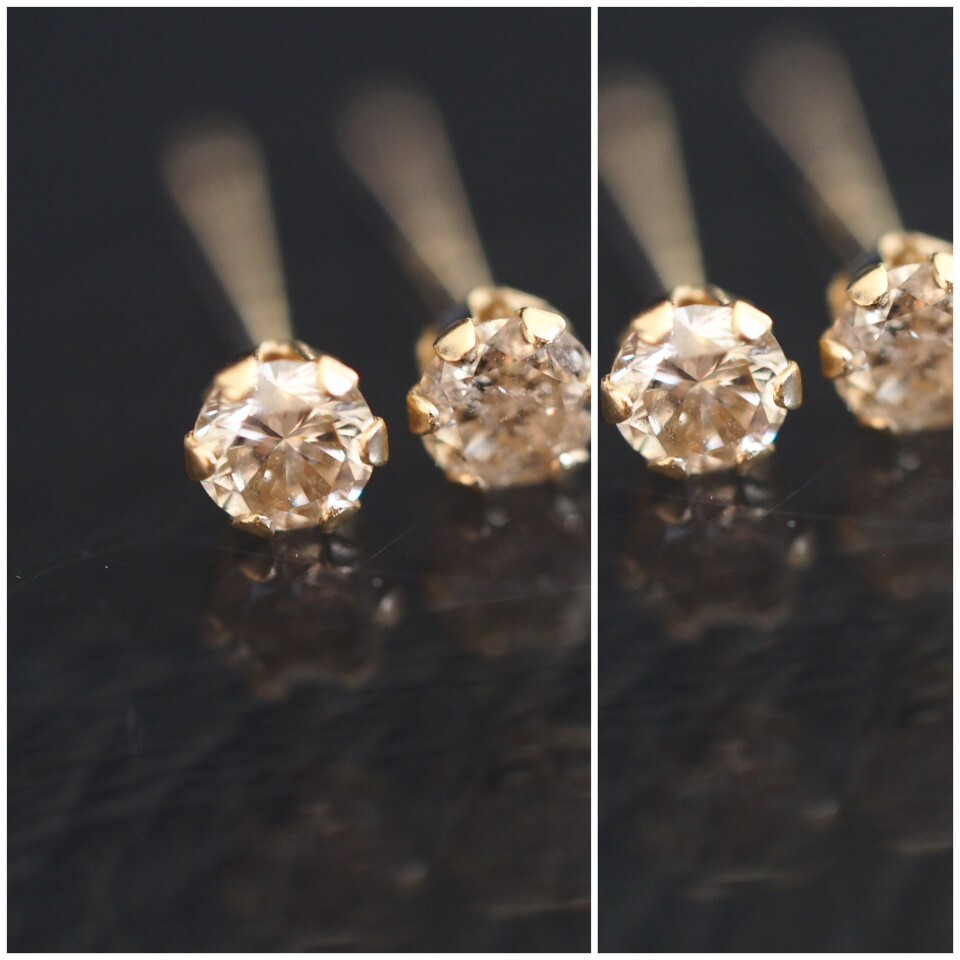 こちらは2㎜サイズの天然ダイヤモンドが輝くスタッドピアスです。 0.035ctのわずかな存在感ですが、 耳元で上質なかわいらしさを感じます。 *地金:K10(刻印があります) *天然ダイヤモンドサイズ:2mm(0.035Ct)×2コ *ピアス全長:約10.7㎜ |