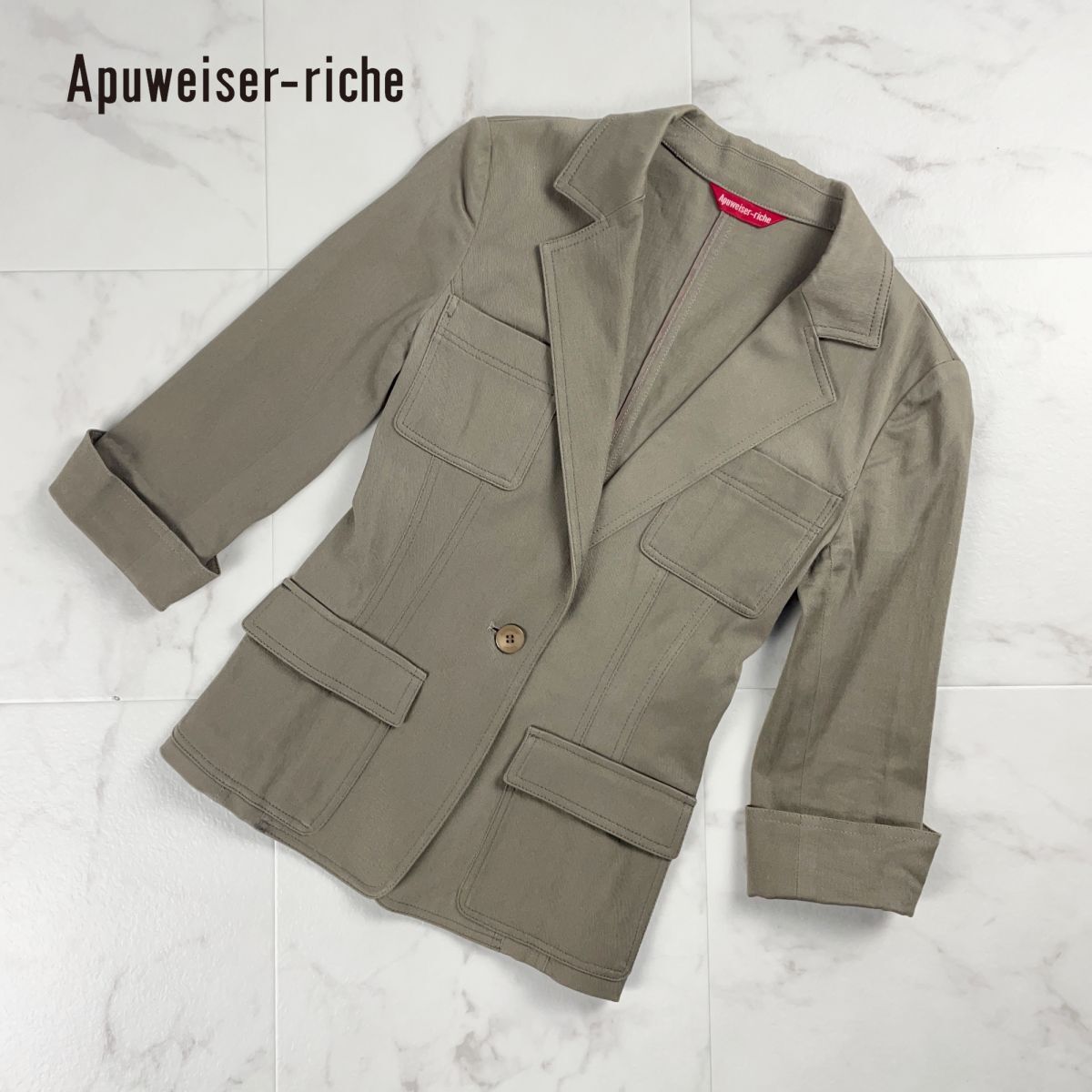 美品 Apuweiser-riche アプワイザー・リッシェ テーラード 七分袖カジュアルジャケット コットン レディース ブラウン サイズ0*PC535